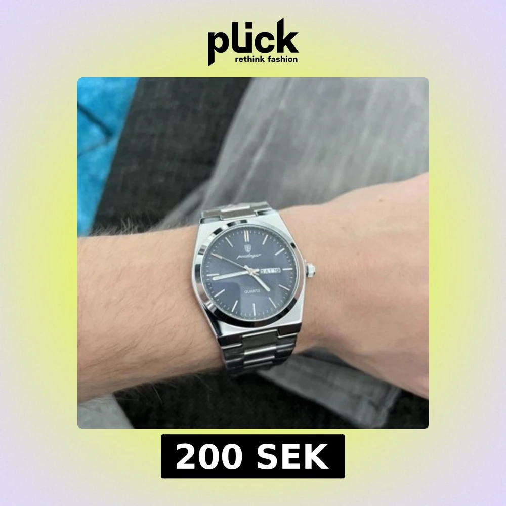 Stilren med blå urtavla och dag/datumvisning. Boetten och länken är i blankt silverfärgat metall, vilket ger en modern och clean look. Klockan har quartzverk och minimalistiska indexmarkeringar. Perfekt accessoar för dig som gillar klassisk design.