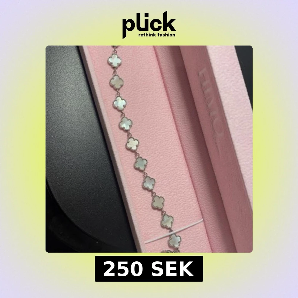 Elegant armband från Himo med silverfärgade fyrklöverformade länkar. Perfekt för att ge en stilren touch till din outfit. Kommer i en rosa presentask. Samt vattentåligt