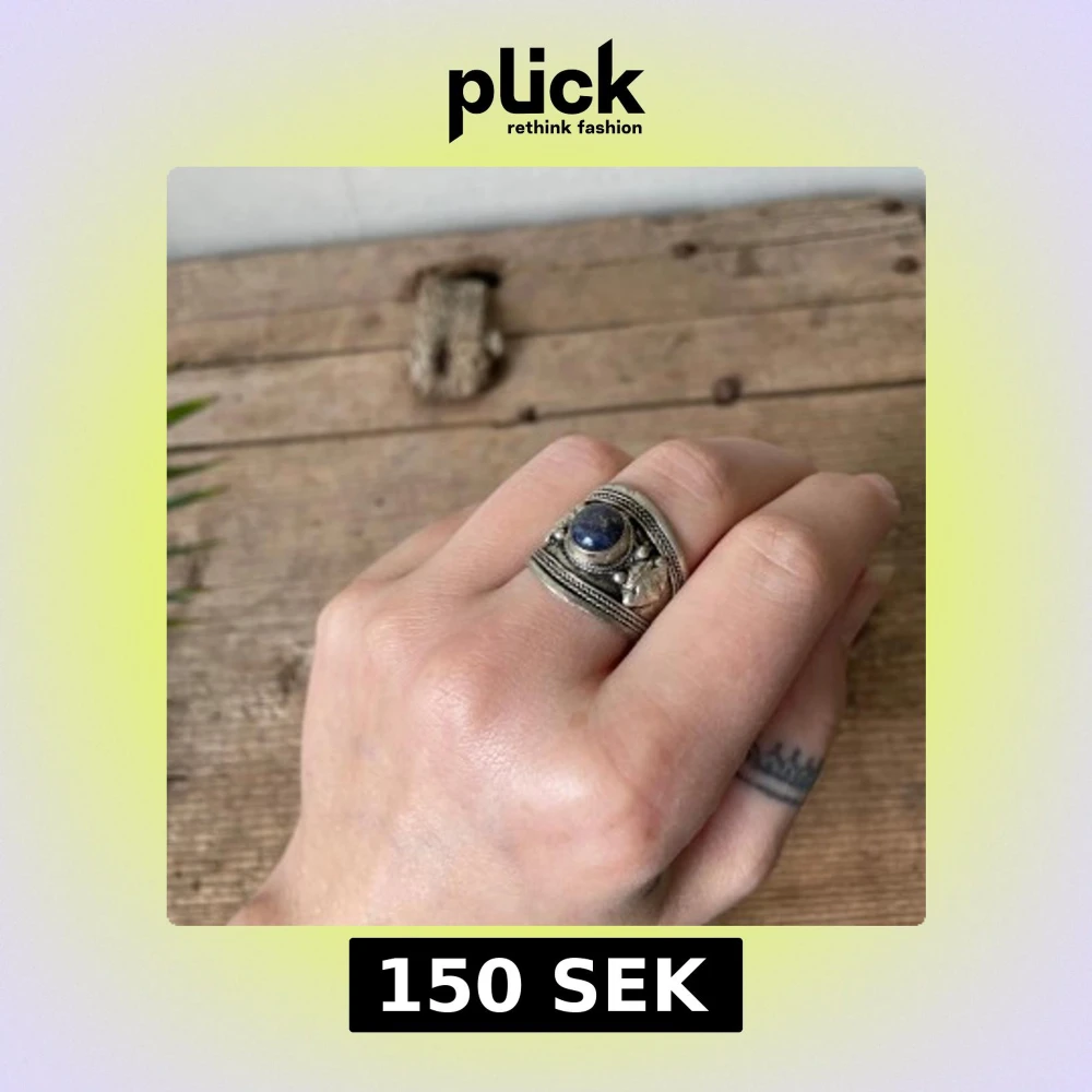 Säljer en bred och detaljerad silverring med en rund blå lapis lazuli sten i mitten. Ringen har vackra ingraverade mönster och små blommor på sidorna. Justerbar storlek tack vare öppen baksida. Perfekt statement-piece!