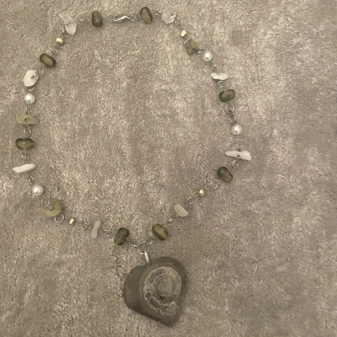 Egentillverkat halsband med snäckfossil hjärt charm!