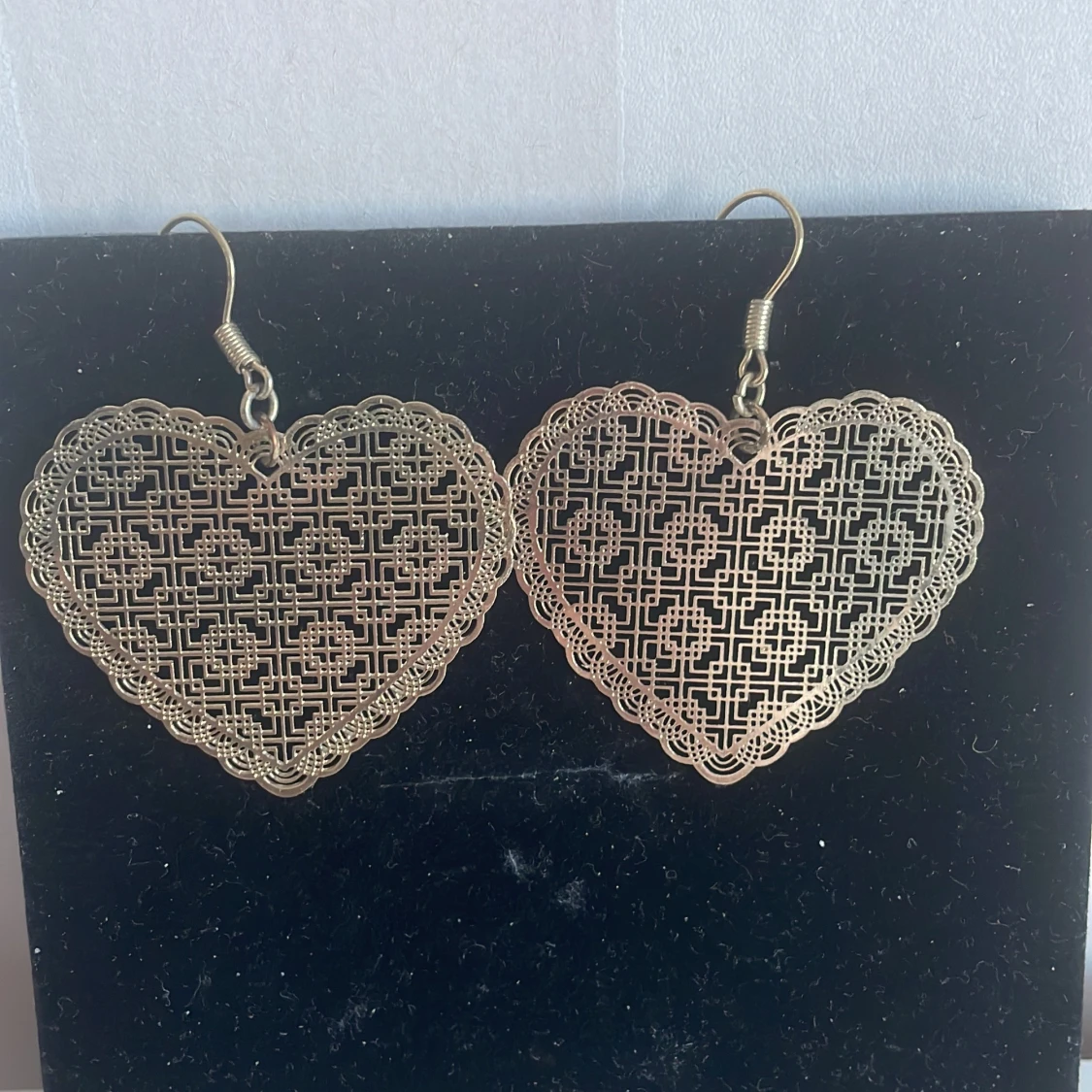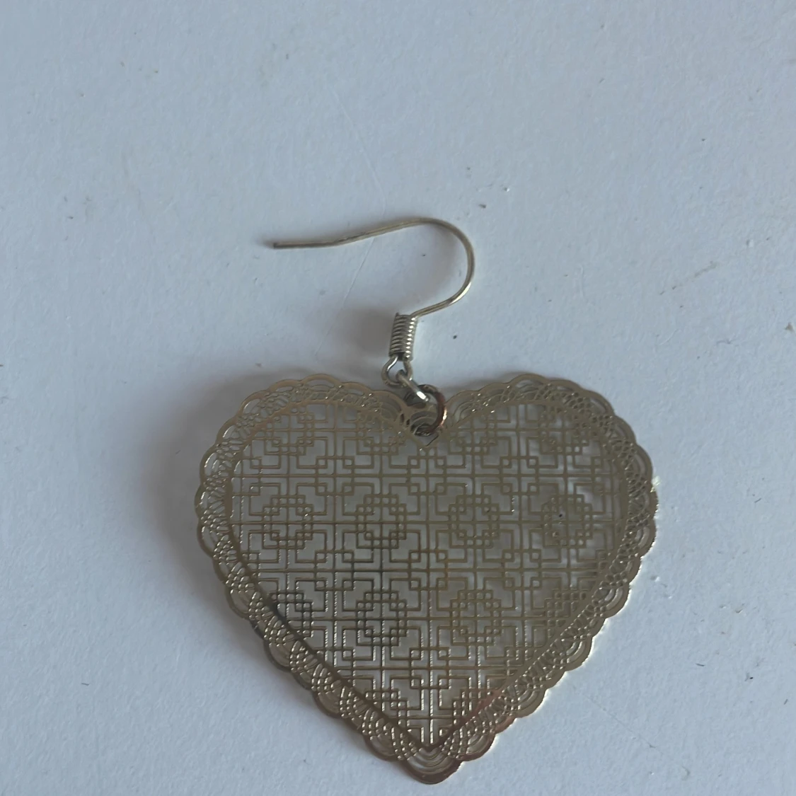 Snygga hjärtformade örhängen i guld med ett intrikat mönster. Perfekta för att ge en romantisk touch till din stil. De är lätta och bekväma att bära hela dagen.