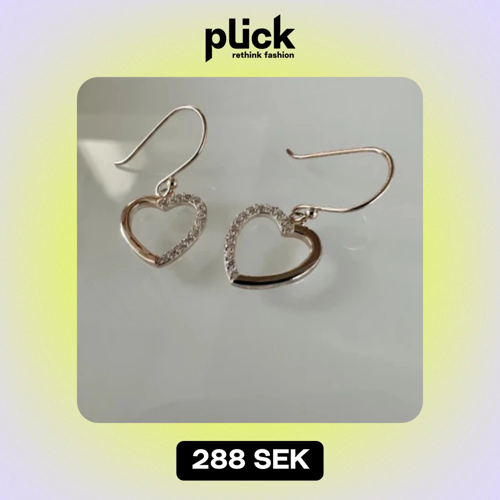 BESKRIVNING Örhängen i äkta silver i form av hjärtan med små klara Cubic Zirconia stenar upptill. Ett par nätta örhängen med stilren design och skimrig detalj.