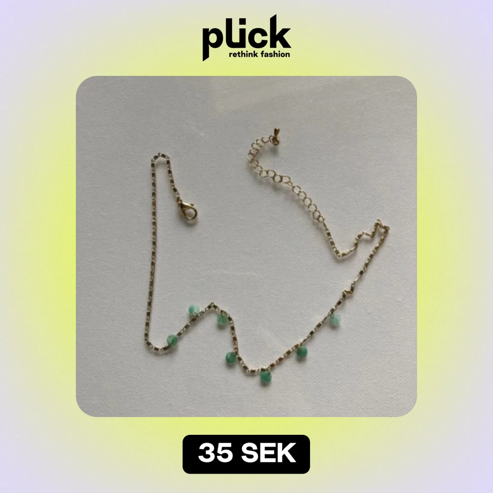 Fint halsband frĂ„n HMđ«¶đ». PĂ„ lĂ€ngden Ă€r halsbandet tot 45cmâïž. Bra skick đanvĂ€nd Max 5 gĂ„nger. Kjedjan Ă€r guld och âpĂ€rlornaâ marmor gröna đđ