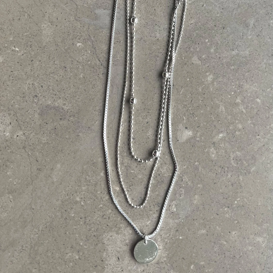 Stilrent halsband i silverfärg med flera tunna kedjor i olika längder. Har används en handfull gånger men är i nyskick!