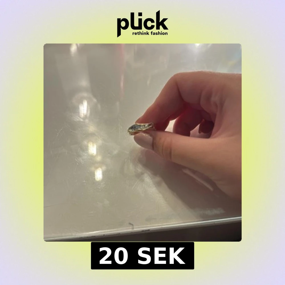Unik guldfärgad ring med vågig form som ger en cool och modern vibe. Perfekt för dig som gillar stilrena smycken med en twist. Ringen är i metall och har en blank finish som fångar ljuset snyggt.