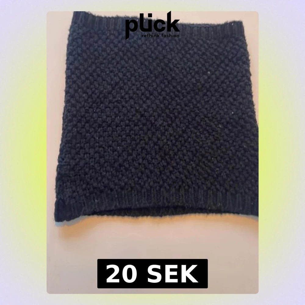 Säljer en svart stickad halsduk/tube med grov struktur och ribbad kant upptill och nedtill. Perfekt när det är kallt. Materialet är mjukt och värmande, passar dig som gillar klassisk stil.