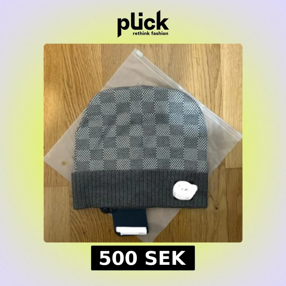 Snygg grå mössa med rutigt mönster och bred ribbad kant. Perfekt för dig som gillar stilrena accessoarer med lite edge. Mössan har en liten vit patch framtill som detalj. Passar till både streetwear och chill dagar.