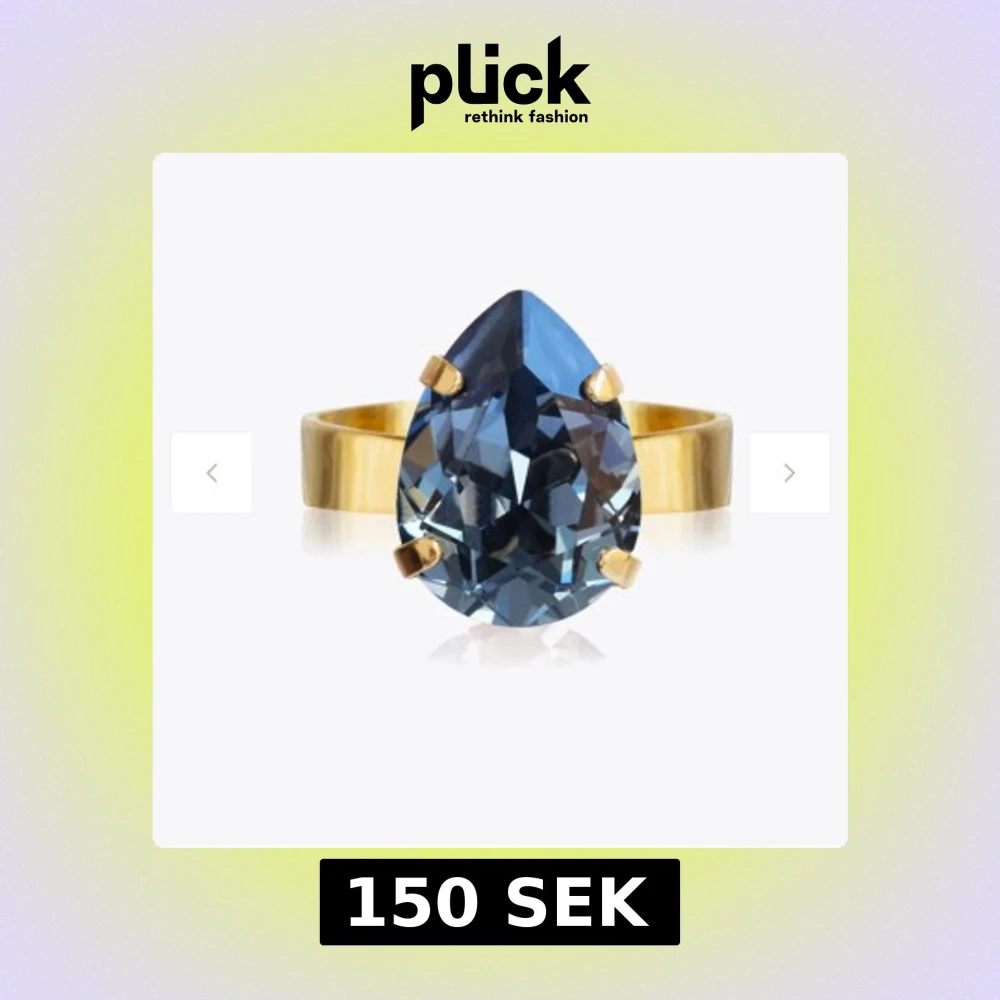 Elegant guldfärgad ring med en stor, droppformad blå sten. Ringen har en justerbar design för att passa olika storlekar. Den är i använt skick men det syns endast på baksidan och är inget man tänker på💕