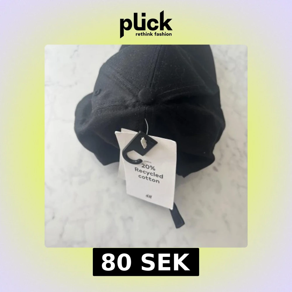 Svart klassisk keps från H&M med böjd skärm och justerbar rem baktill. Tillverkad i bomullstyg med 20% återvunnen bomull, perfekt för en clean och stilren look. Passar dig som gillar enkel och tidlös streetstyle.