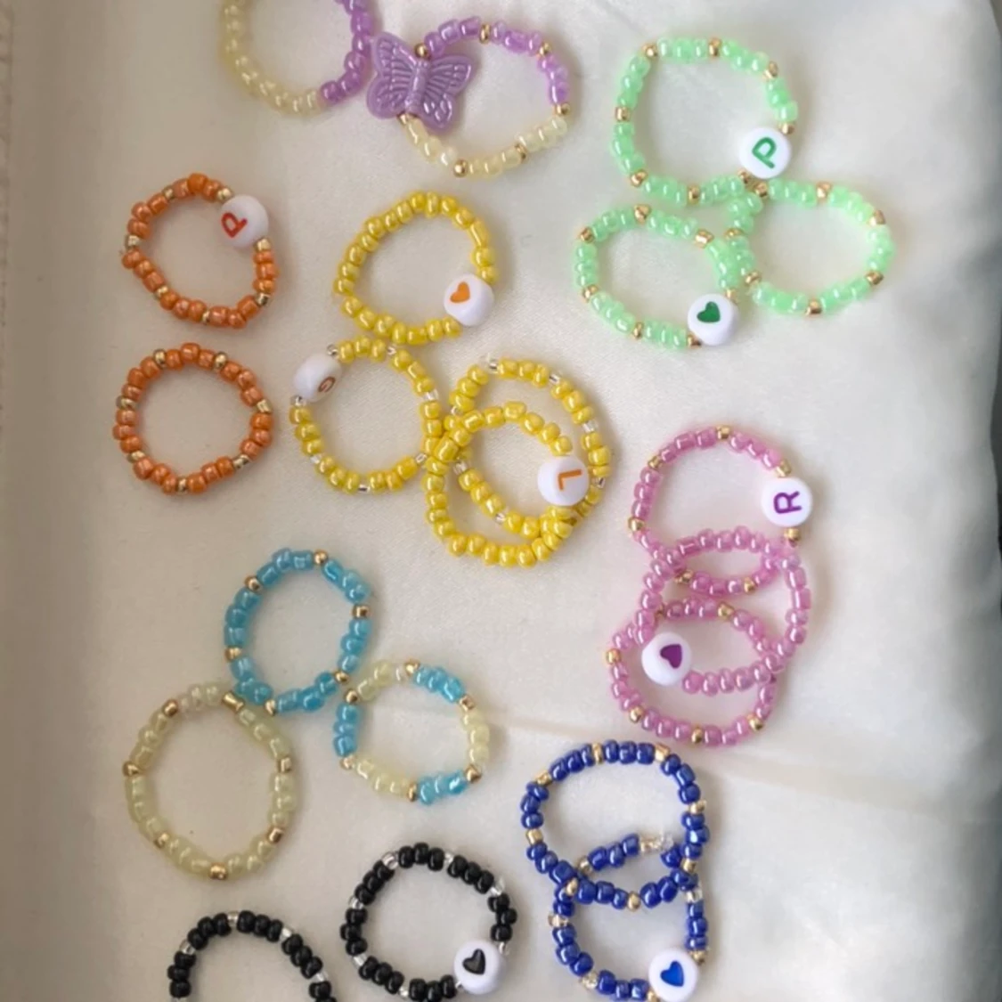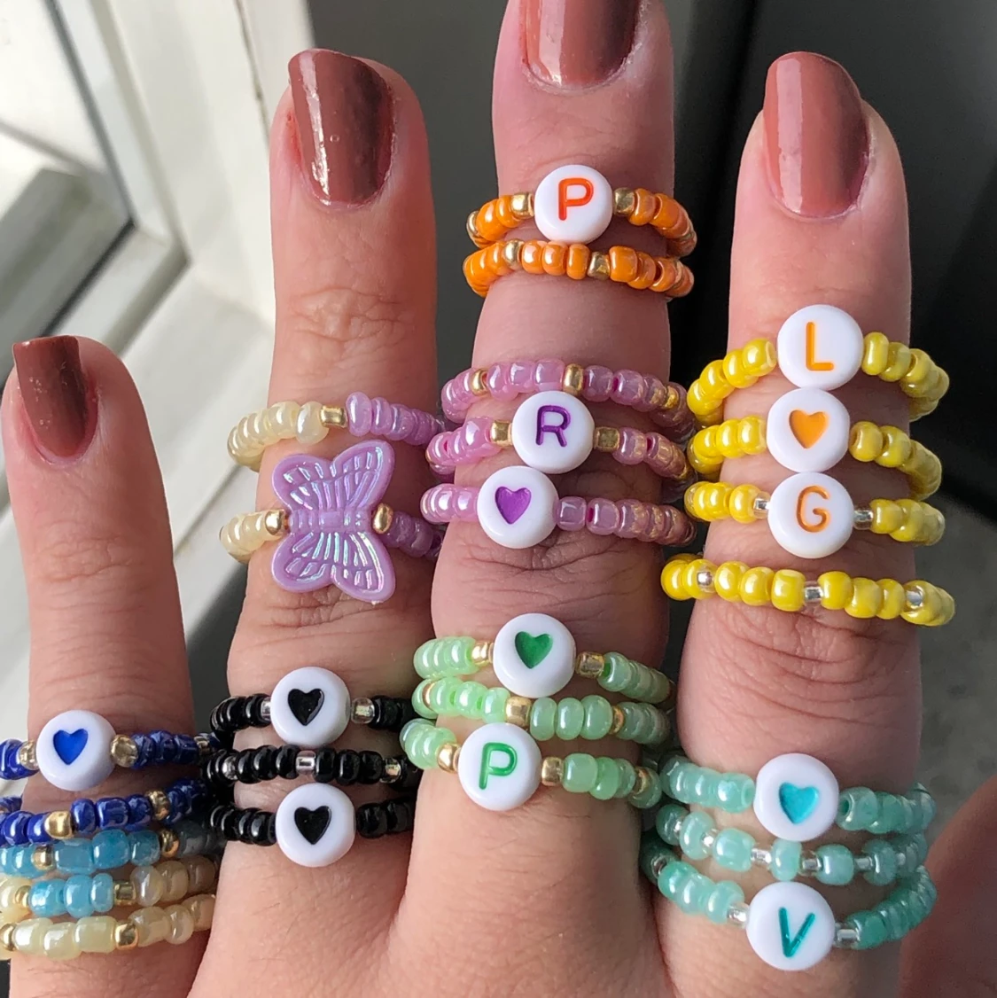 Säljer dessa super söta ringar som jag gör själv! ❤️ Jag gör de på beställning så är det så att det är någon modell du önskar som inte finns här på bilden kan jag fixa det åt dig! Du väljer själv vilken bokstav du vill ha. Dessa ringar är så fina som en present eller att kombinera tillsammans ❤️ 1 ring kostar 20, 2 för 38 och 3 för 55 ❤️