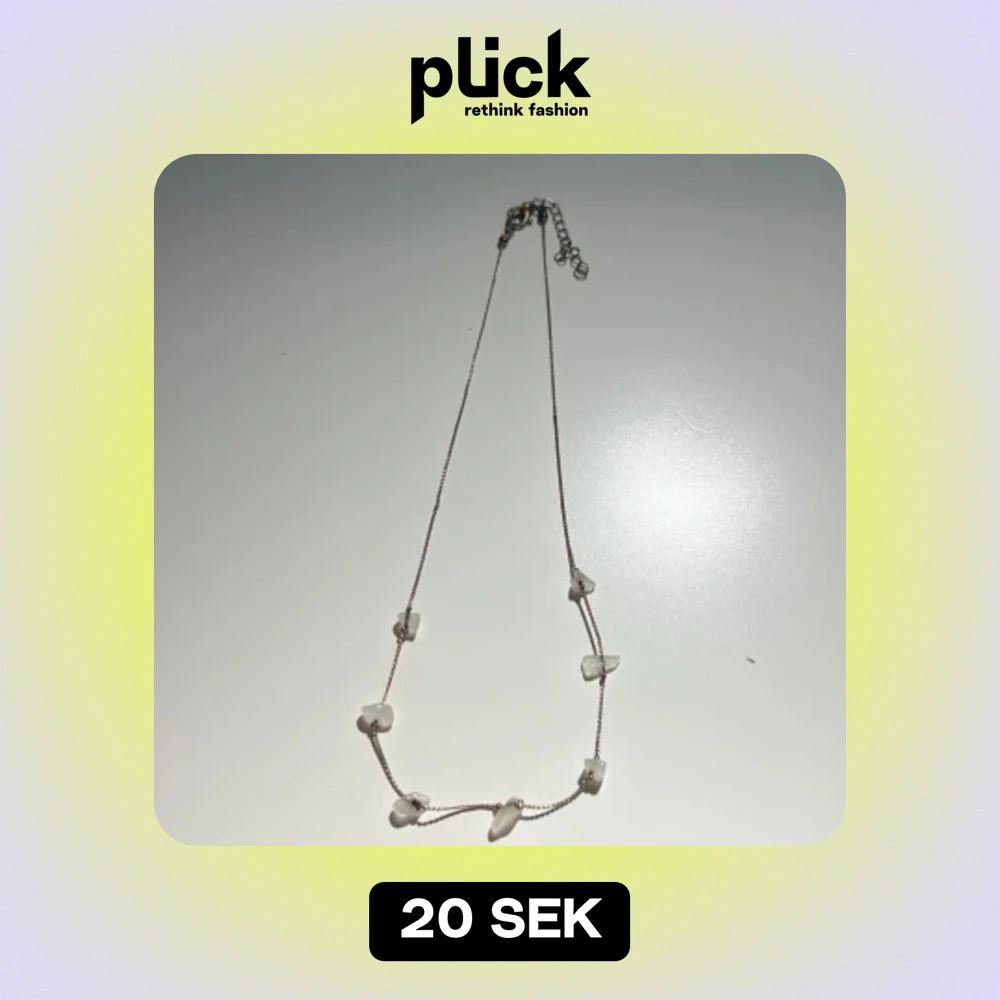 Säljer ett halsband med vita stenar på. Har blivit lite lite missfärgat eftersom jag inte har använt det så mycket.