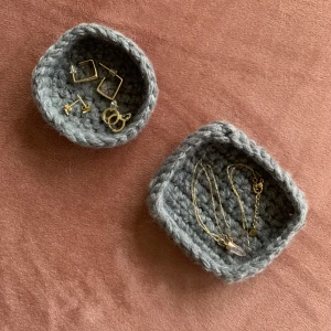 Jätte fina och simpla smyckesfat jag virkar själv, säljer två i ett kit för 100kr eller en för 60 kr st. 🤍 kontakta gärna mig vid fler frågor 🫶 frakt 15kr !!Virkar dessa efter beställning!!