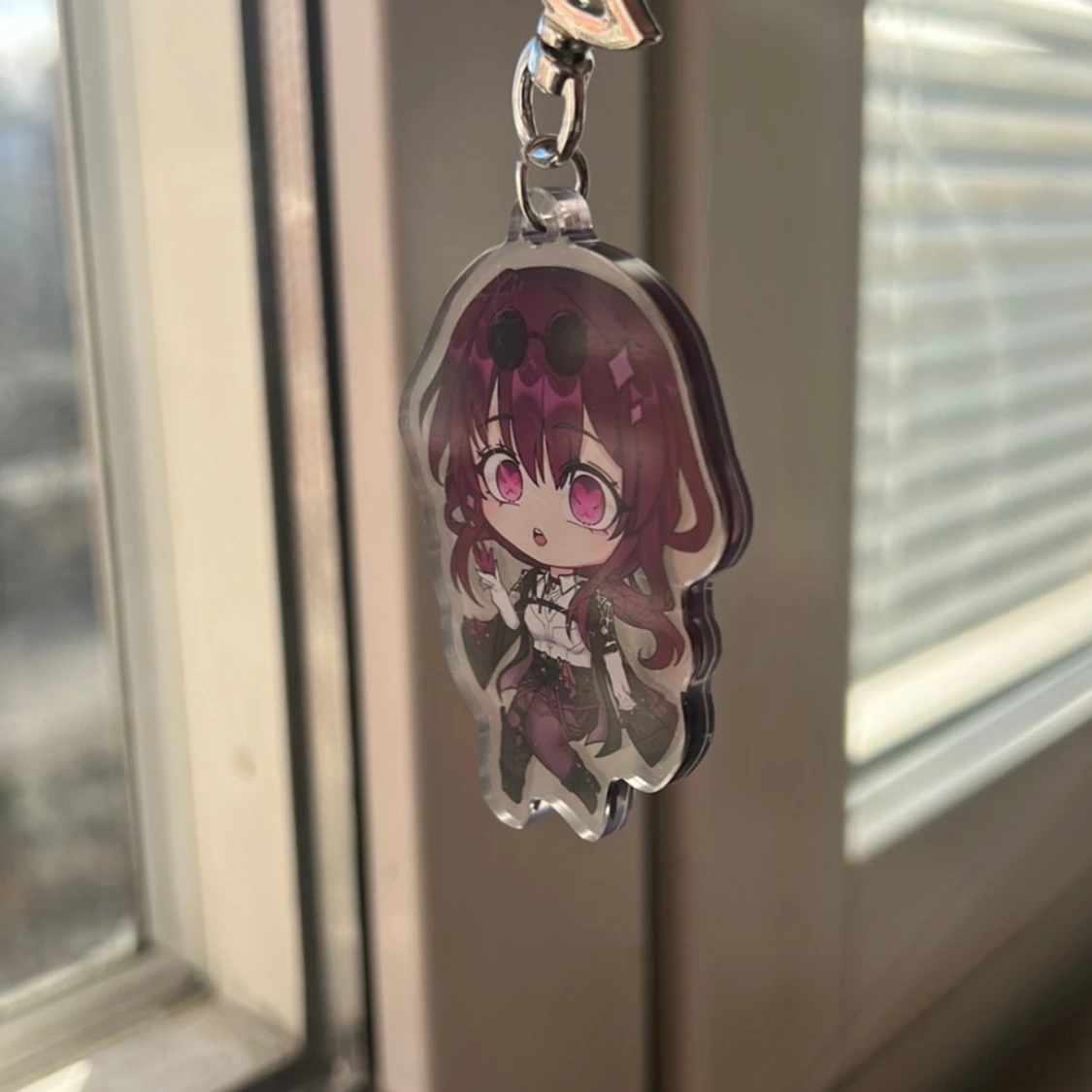 Keychain of Kafka from Honkai: Star rail! Perfect for your bag decorations or collection :) (There might be scratches on the surface but that’s only on the protective layer of plastic, peel it off on both sides and it’ll be perfectly shiny!)