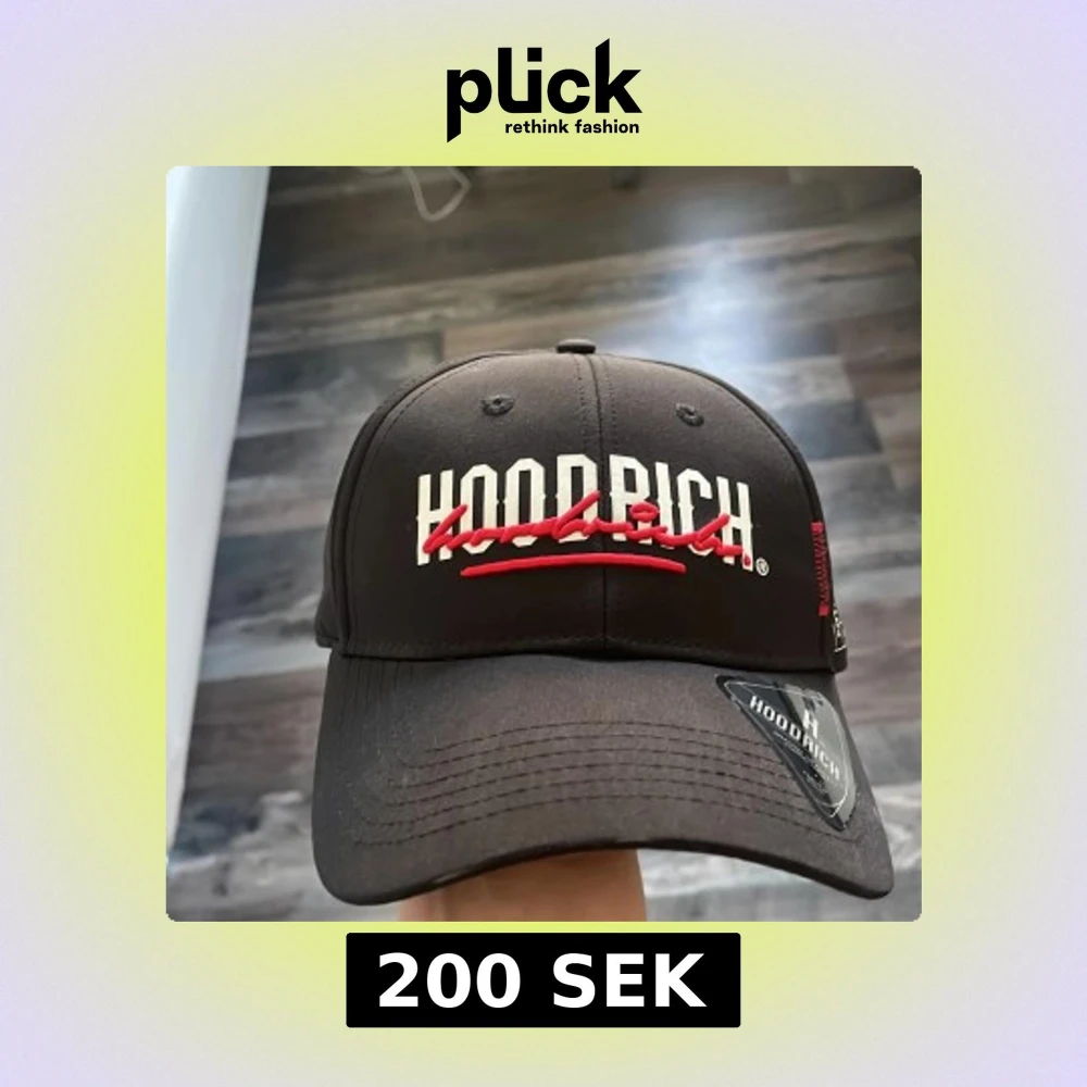 Snygg svart keps från Hoodrich med vit och röd brodyr framtill och på sidan. Kepsen har böjd skärm, coola streetwear-detaljer och justerbar passform. Materialet är polyester med lite elastan för extra komfort. Perfekt för dig som gillar urban stil.