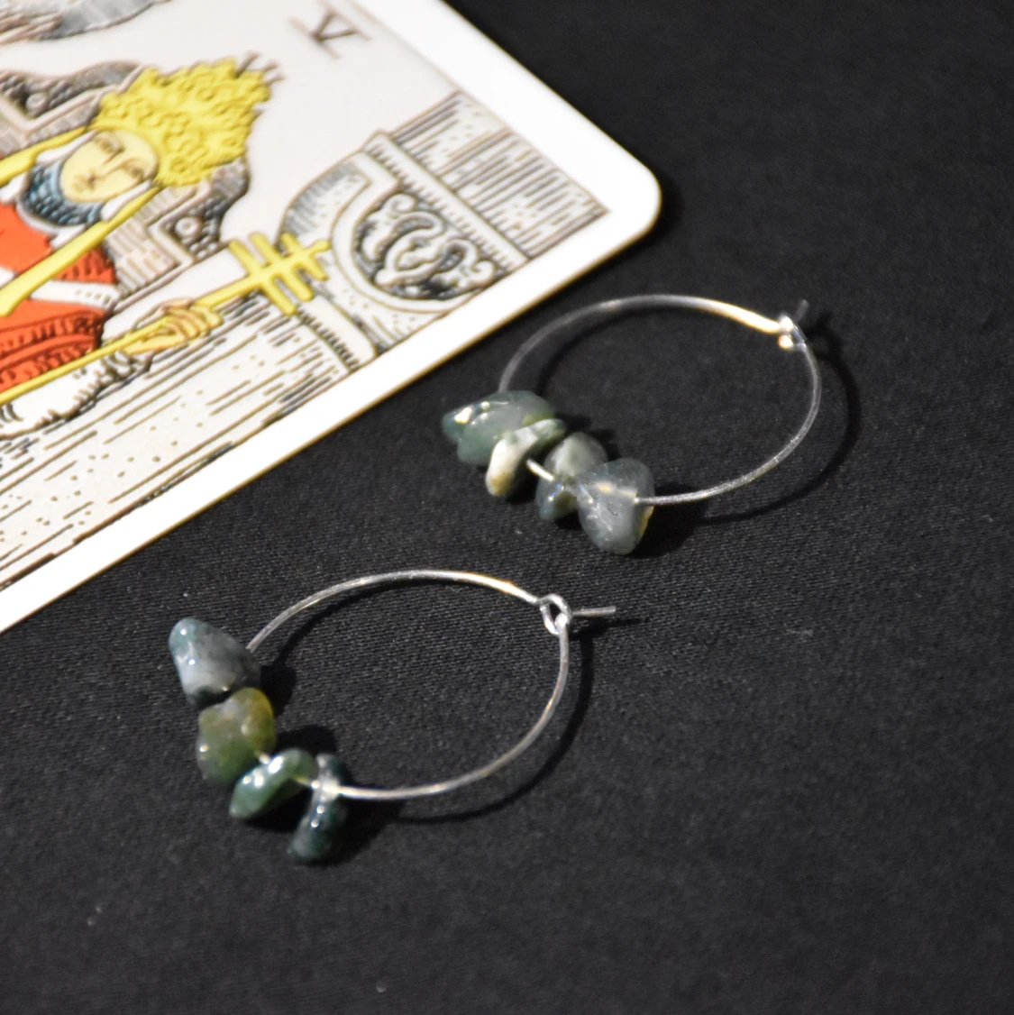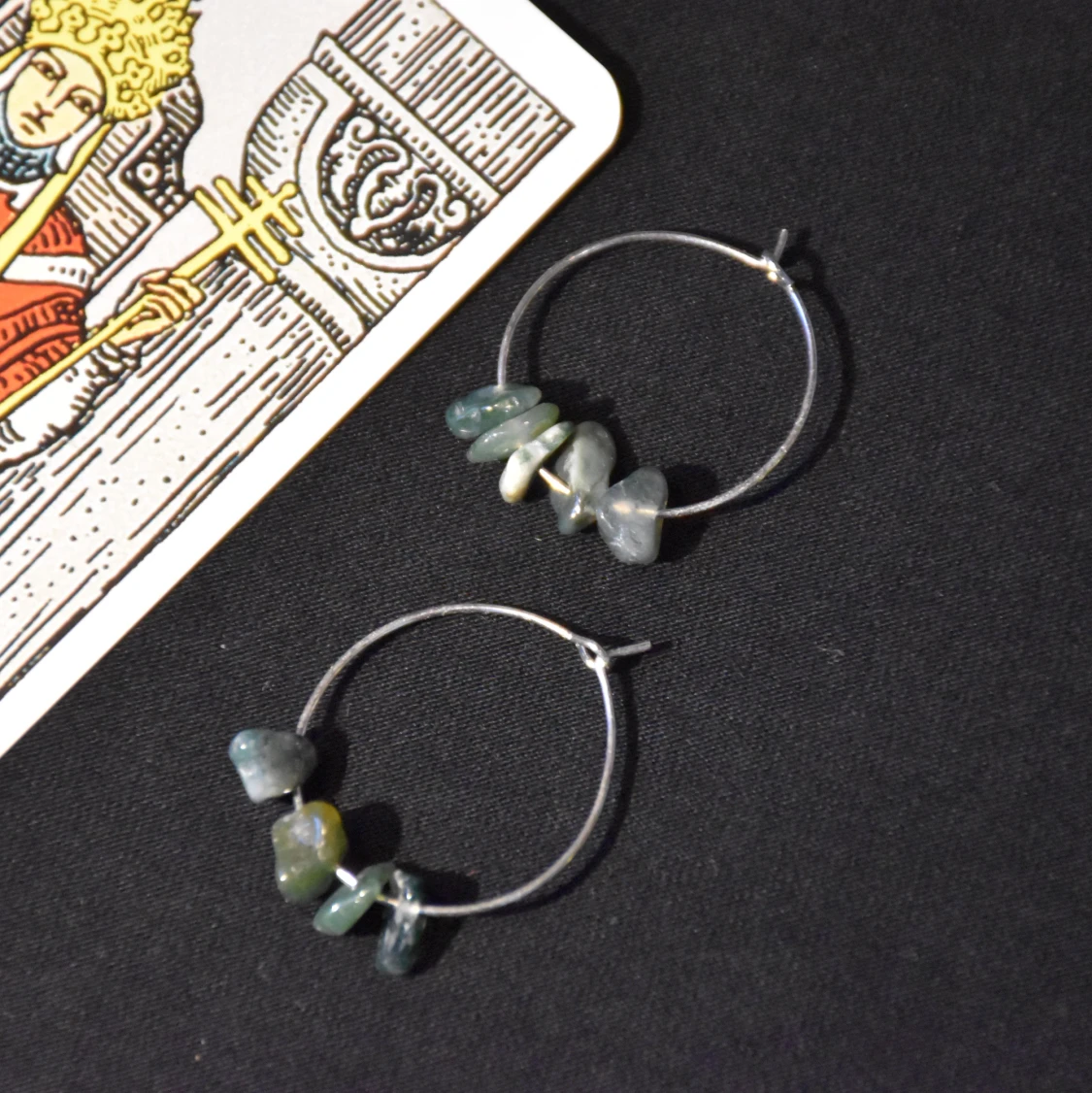 Silvriga hoops med äkta mossagat! De är nickelfria.