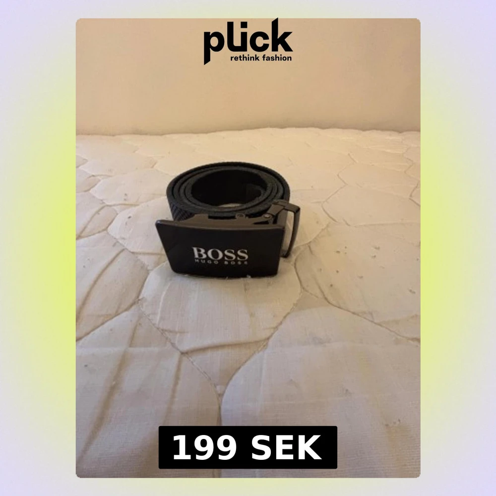Snyggt svart bälte från Hugo Boss med ett stilrent metallspänne där loggan är tydligt graverad. Bältet har en diskret textur och är tillverkat i slitstarkt material som ger en modern vibe. Perfekt för att lyfta din outfit med en exklusiv touch. Bältet är 100 cm långt och jag svarar gärna på frågor.