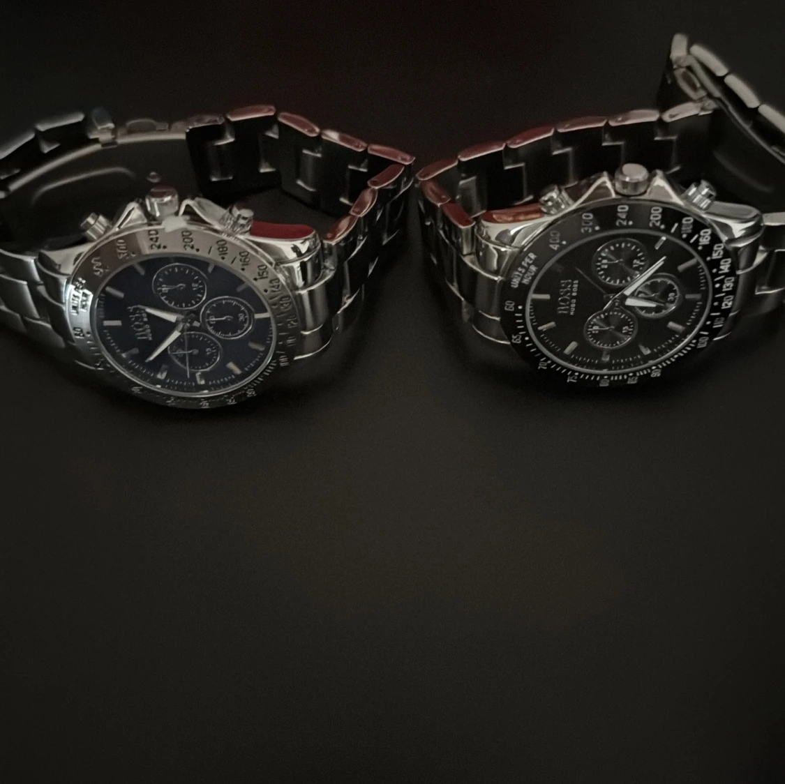 Snygg och stilren klocka från Hugo Boss med silverfärgad länkarmband och blå urtavla. Klockan har tre mindre urtavlor och en tachymeter på ringen. Perfekt för den som vill ha en elegant accessoar.