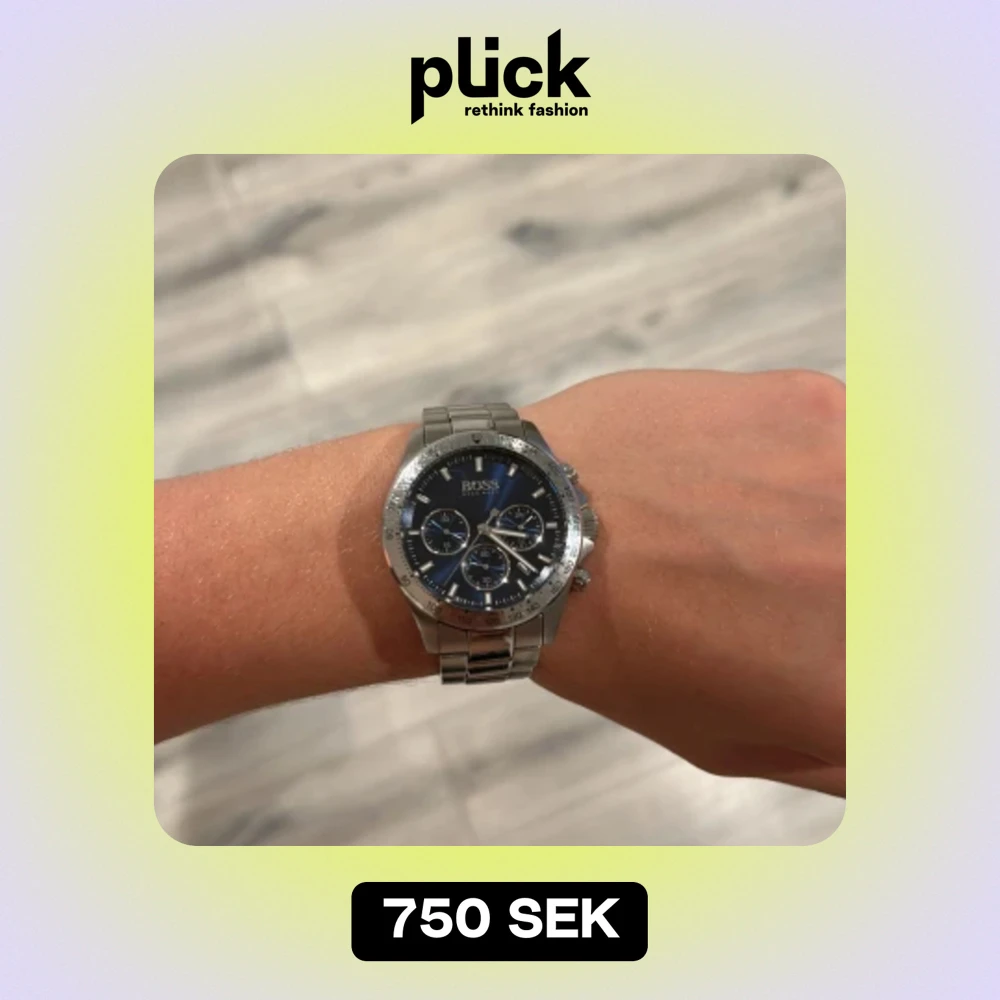 Hugo boss klocka. Orginalvärde 4500kr. Finns små repor på glaset som syns om man tittar nära, men ej synligt på långt håll.Länken på klockan har gått sönder som man kan se på den tredje bilden,men det är inget som märks när dem är på Haft i ca 1,5 år