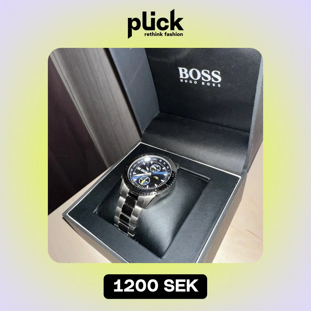 Säljer en stilren Hugo Boss klocka i silver med en snygg blå urtavla. Klockan har en robust metallarmband och kommer i originalförpackning. Perfekt för både vardag och fest! PRIS KAN DISKUTERAS