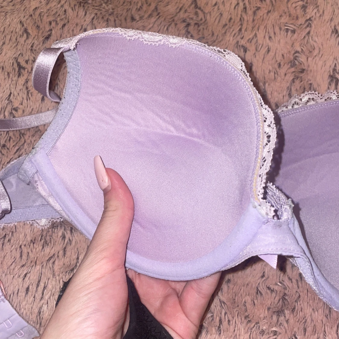 Säljer en vacker lila bh från Hunkemöller med spetsdetaljer och en söt rosett framtill. Säljer då den var för stor.