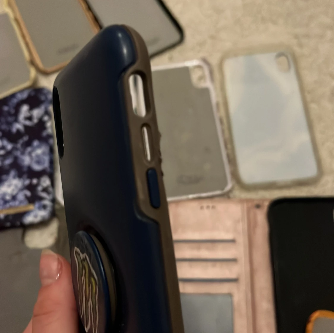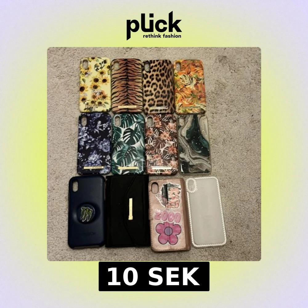 12 snygga iDeal of Sweden och andra märken skal för iPhone XR/11 i olika mönster och färger, inklusive plånboksfodral. Skalen är i varierande skick, vissa med mindre slitage och repor. Det orangea skelet liten spricka men inget som påverkar användningen. Ottorbox skalets höj knapp trasig. Perfekt för dig som vill byta stil ofta eller behöver reservskal. Pris kan diskuteras men billigt, köp gärna alla.