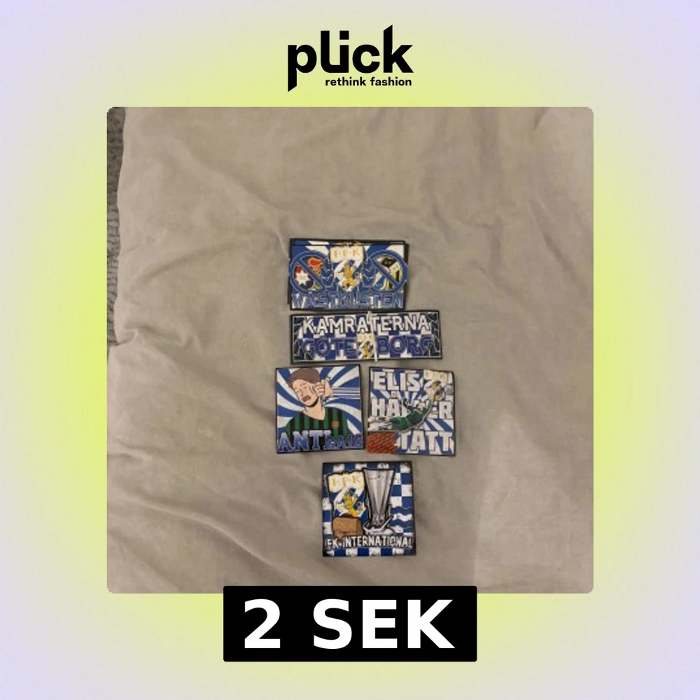 Säljer ett set med fem unika IFK Göteborg supporter klibbor med blåvita motiv, klubbmärken och text som 'Västkusten', 'Kamraterna Göteborg', 'IFK International' och 'Anti GAIS'. Perfekt för dig som älskar Blåvitt och vill visa ditt stöd på matchen. 2 kr styck !