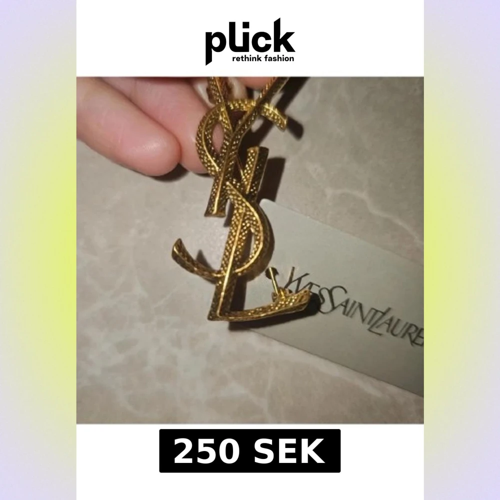 Säljer ett par statement broschi guldigt metallmaterial. Örhängena har den ikoniska i en snygg, texturerad finish som ger extra lyxig känsla. Perfekt för dig som vill sticka ut med designeraccessoar.