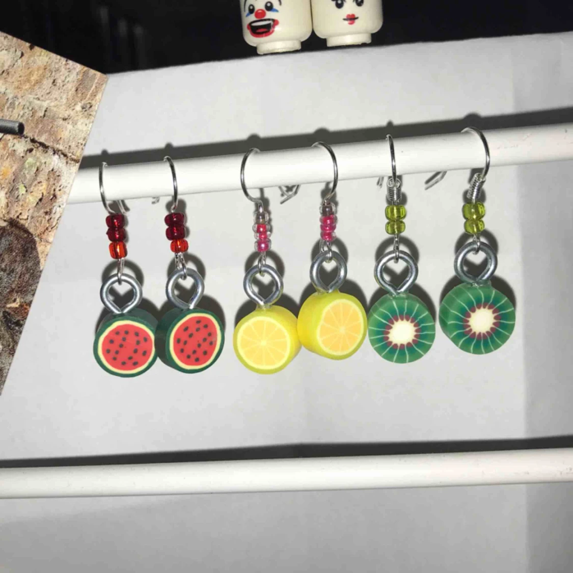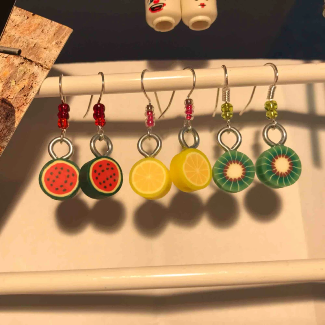 Frukt-örhängen för 29kr/styck! Handgjorda av mig :D Frakt kostar 11kr, annars kan jag mötas upp i Stockholm! <3