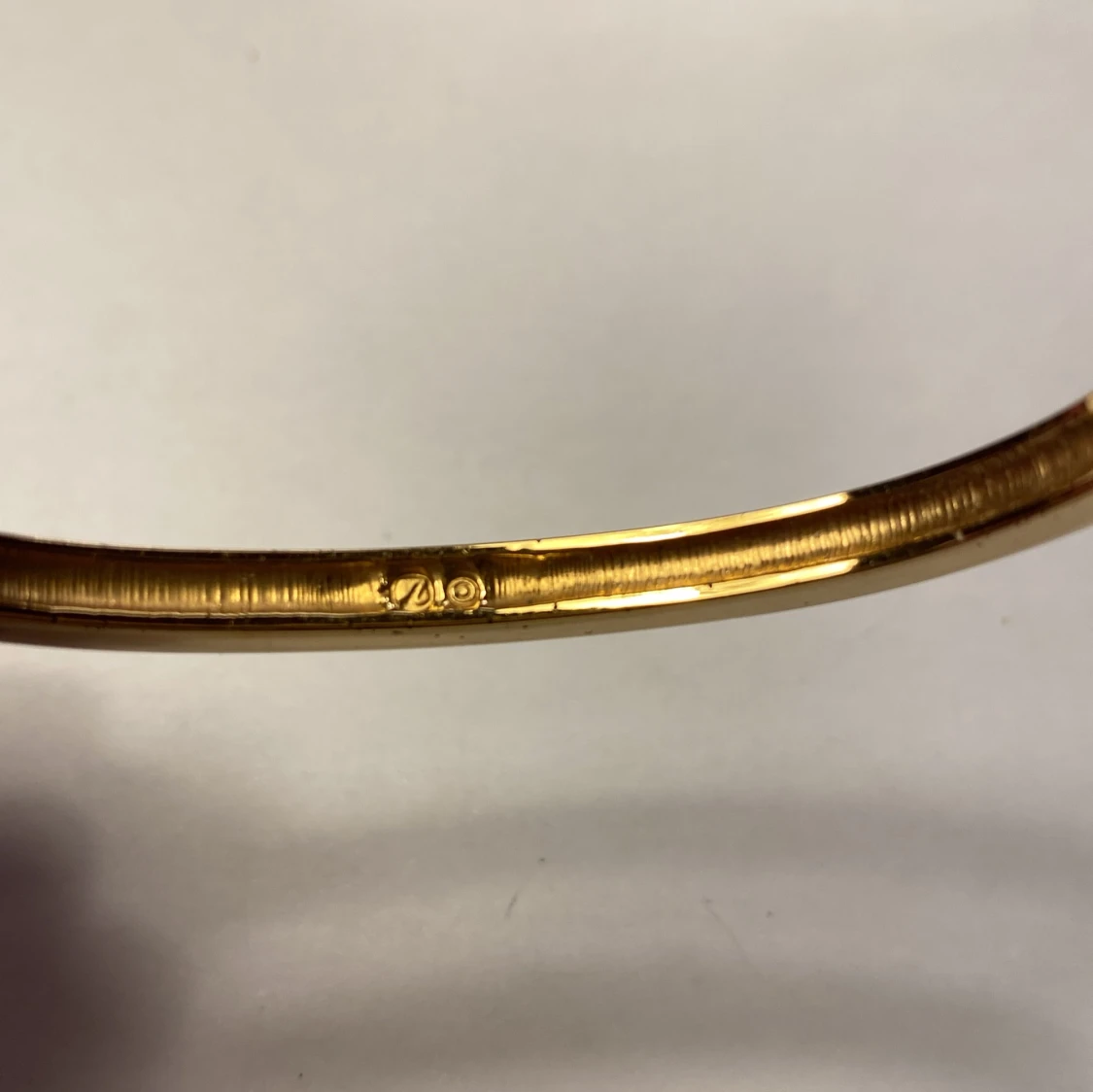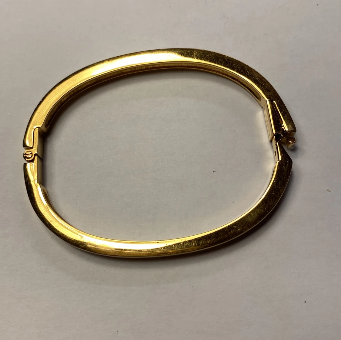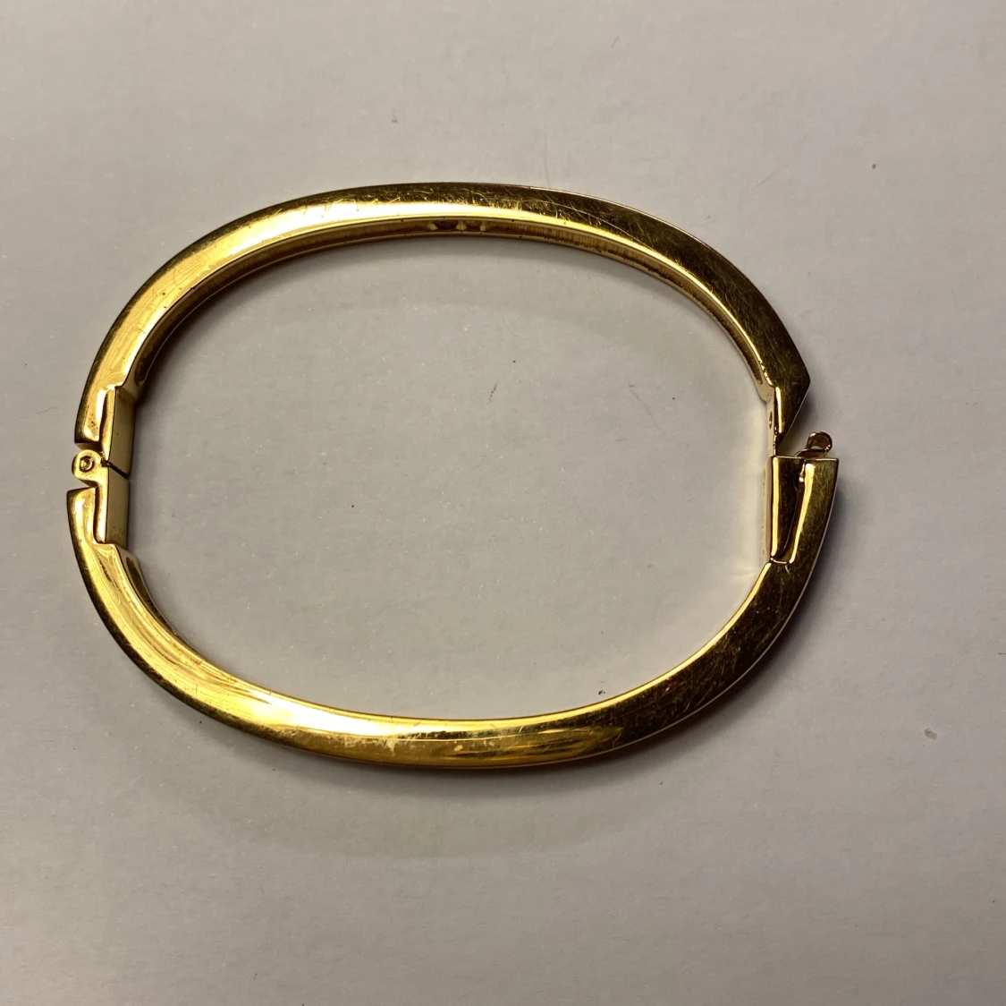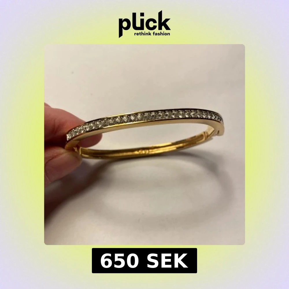 Elegant vintage armband från USA med en rad av glittriga stenar längs ovansidan. Armbandet har en smidig låsmekanism och en stilren design som passar perfekt för speciella tillfällen.