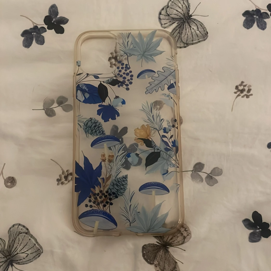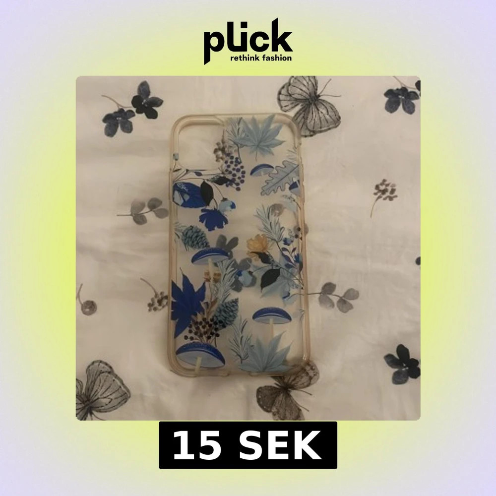 Snyggt mobilskal med transparent bas och blommigt mönster i blått, gult och grönt. Skalet har coola växt- och svampdetaljer som ger en unik vibe till din mobil. Perfekt för dig som vill ha något som sticker ut och känns personligt.
