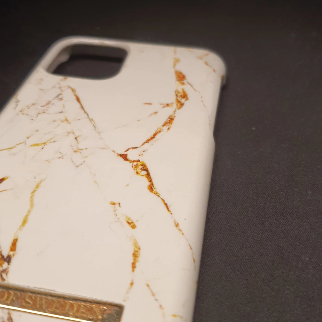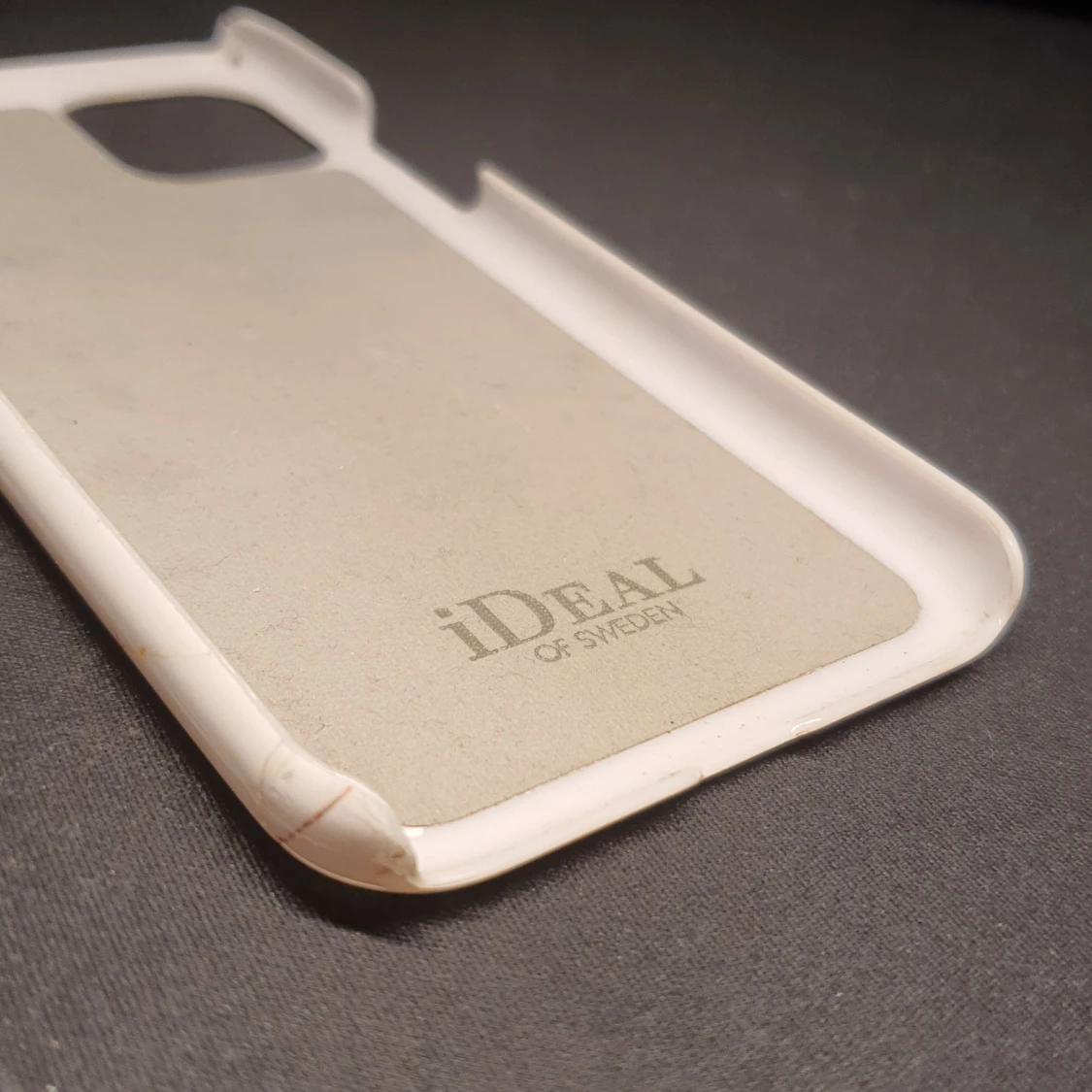 Snyggt mobilskal med marmormönster i vitt och guld från iDeal of Sweden. Skalet har en elegant design med en metallisk logotypdetalj. Perfekt för att ge din telefon ett stilrent utseende.