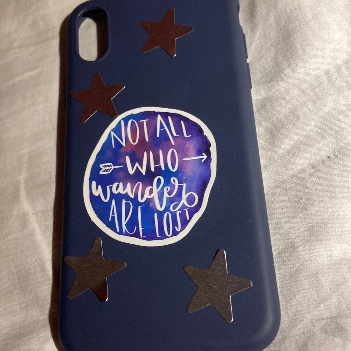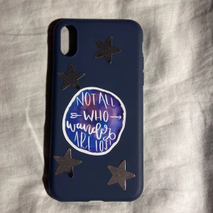 Superfint iPhone X/XS skal som är mörkblått med fina klistermärken på. Har satt på klistermärkena själv för att dölja ett märke där en pop-socket har suttit, alltså är det inte vattentätt med klistermärkena på. Skickar med postnords frakt 15kr. Postbevis✅