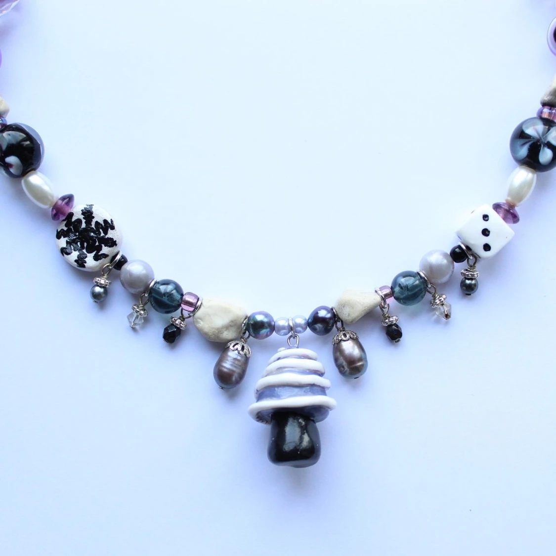 đ Potion âą Glass beads, clay beads, sweetwater pearls âą 41cm (can be extended with cord)