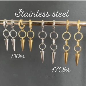Guldpläterat halsband med droppformade pärlor - Elegant halsband i guldpläterat rostfritt stål – finns även i silverfärgad variant. Matchande örhängen finns i en separat annons.  Smycket är 9 mm brett och har en justerbar längd mellan 38–43 cm, vilket gör att det passar perfekt oavsett stil och tillfälle.. De nickelfria och handgjorda