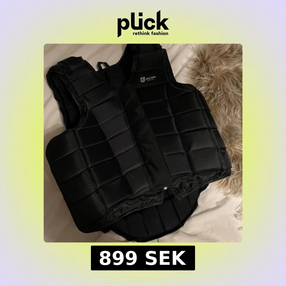 Helt ny oanvänd skyddsväst från Jacson i helsvart med quiltad design och gömd dragkedja framtill. Västen har justerbara remmar och är tillverkad i slitstarkt syntetmaterial. Perfekt för ridning och ger bra skydd över bröst och rygg. Nypris 1300kr och säljer för 899 då den inte har några defekter alls men pris kan eventuellt diskuteras.