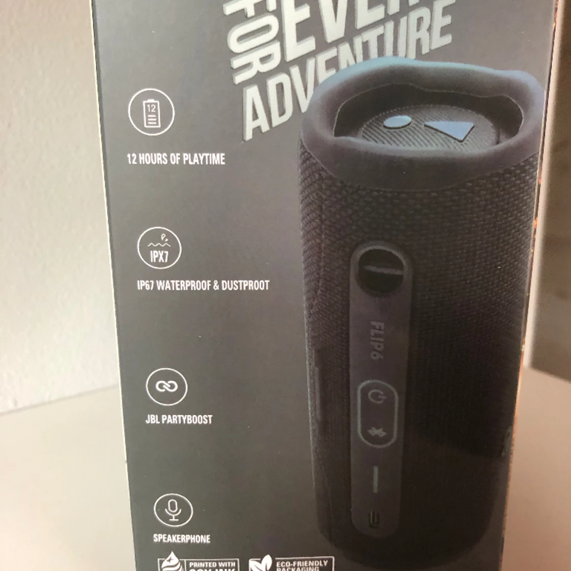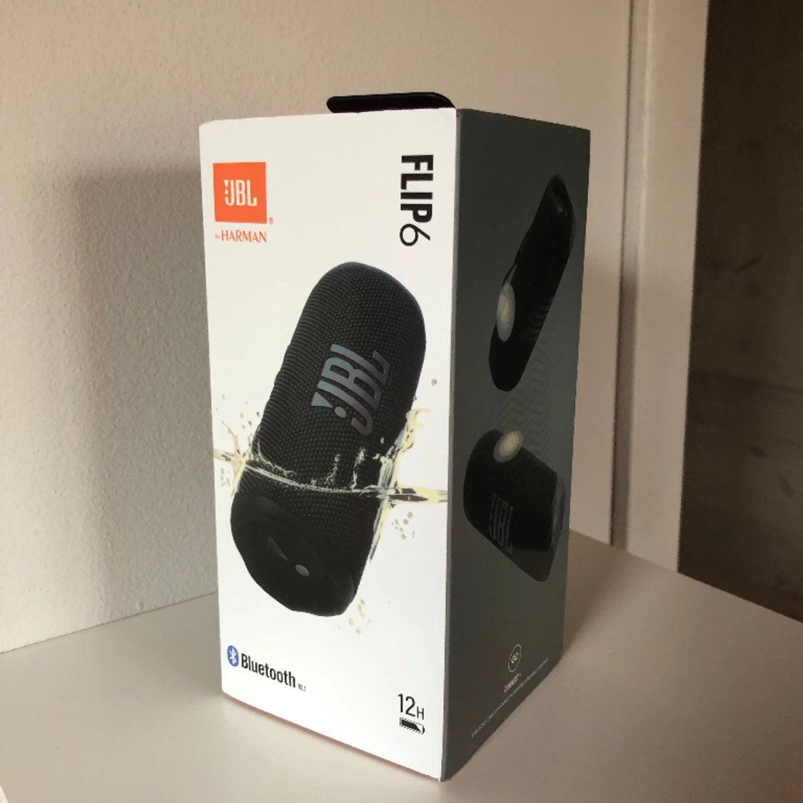 Säljer denna superbra JBL Flip 6 högtalaren som endast är öppnad och testad. Säljer den då jag inte är i något behov av en högtalare. 12 timmar speltid och superbra ljud, laddarsladd följer självklart med.