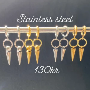 Örhängen med halsband  - Stilrena örhängen och halsband inspirerade av Maria Nilsdotter. Material-rostfritt stål. Örhängen längd-3,7cm, halsband längd-40cm. ☝️Vid köp ingår två extra berlocker som kan bytas ut, då själva hänget är ömtåligt och känsligt för stötar.