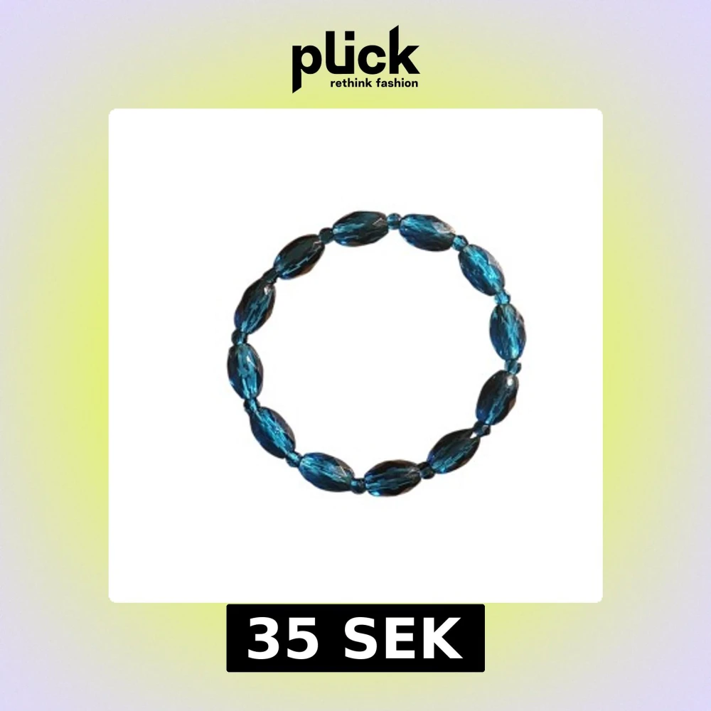 Snyggt armband med glittrande blå ovala pärlor. Perfekt för att ge din outfit en färgklick och lite extra bling. Elastiskt band gör det enkelt att ta på och av.