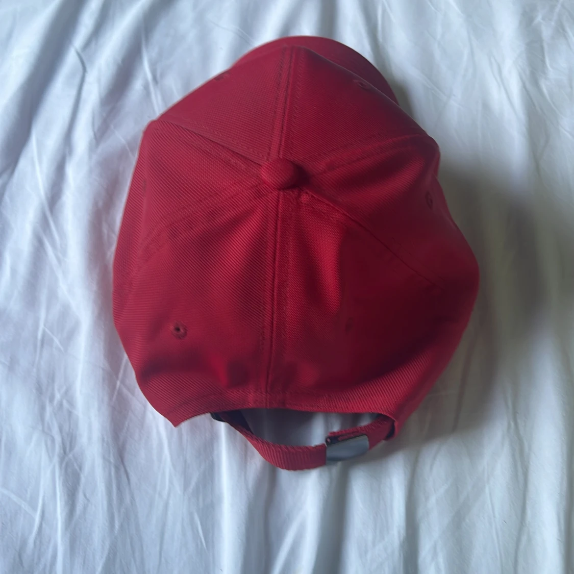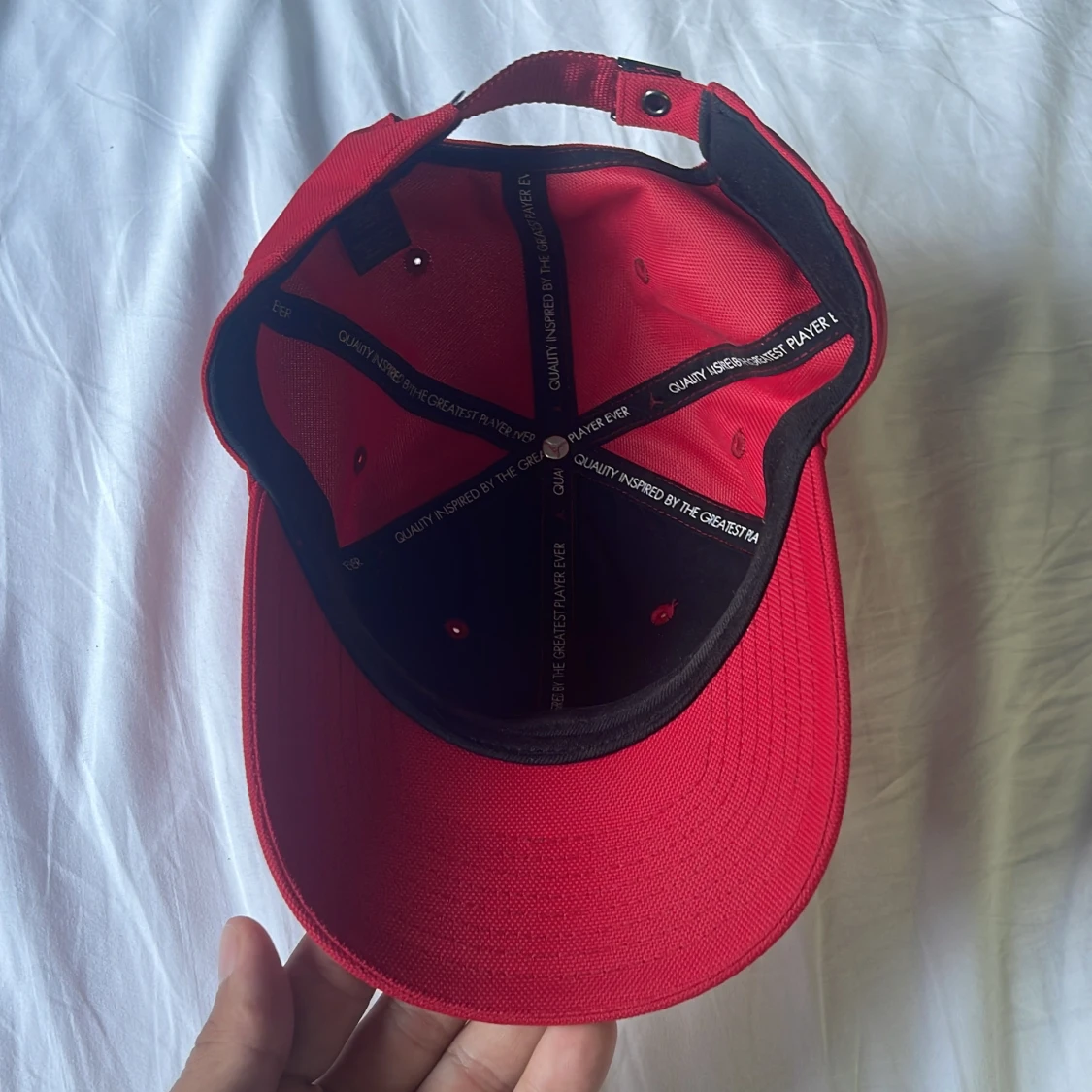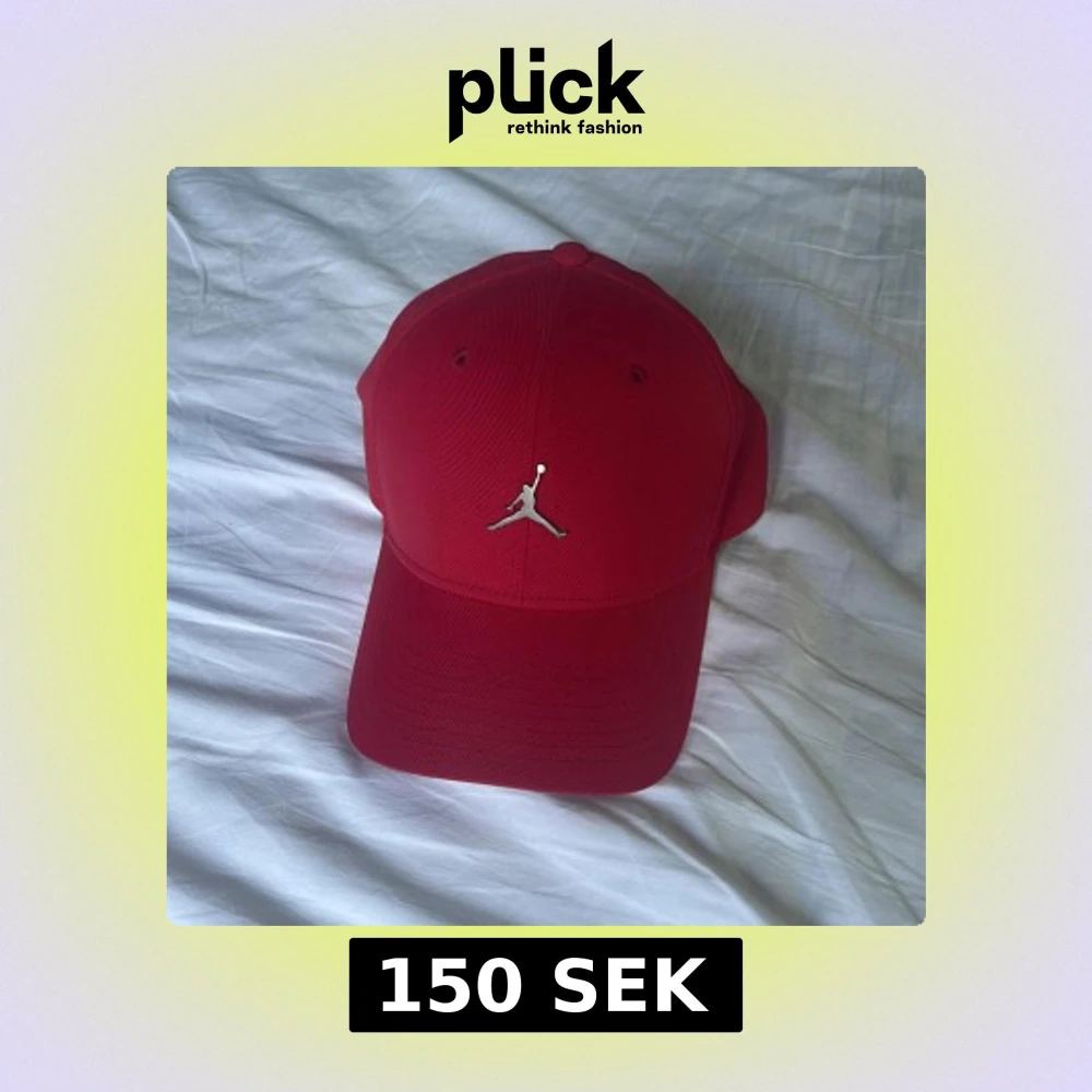 Snygg röd keps från Jordan med den klassiska Jumpman-loggan i silver framtill. Kepsen har böjd skärm, justerbar rem baktill och är tillverkad i slitstark polyester. Insidan har svarta band med texten 'Quality inspired by the greatest player ever'. Perfekt för dig som gillar sportig streetstyle. Inga defekter. Priset kan diskuteras.