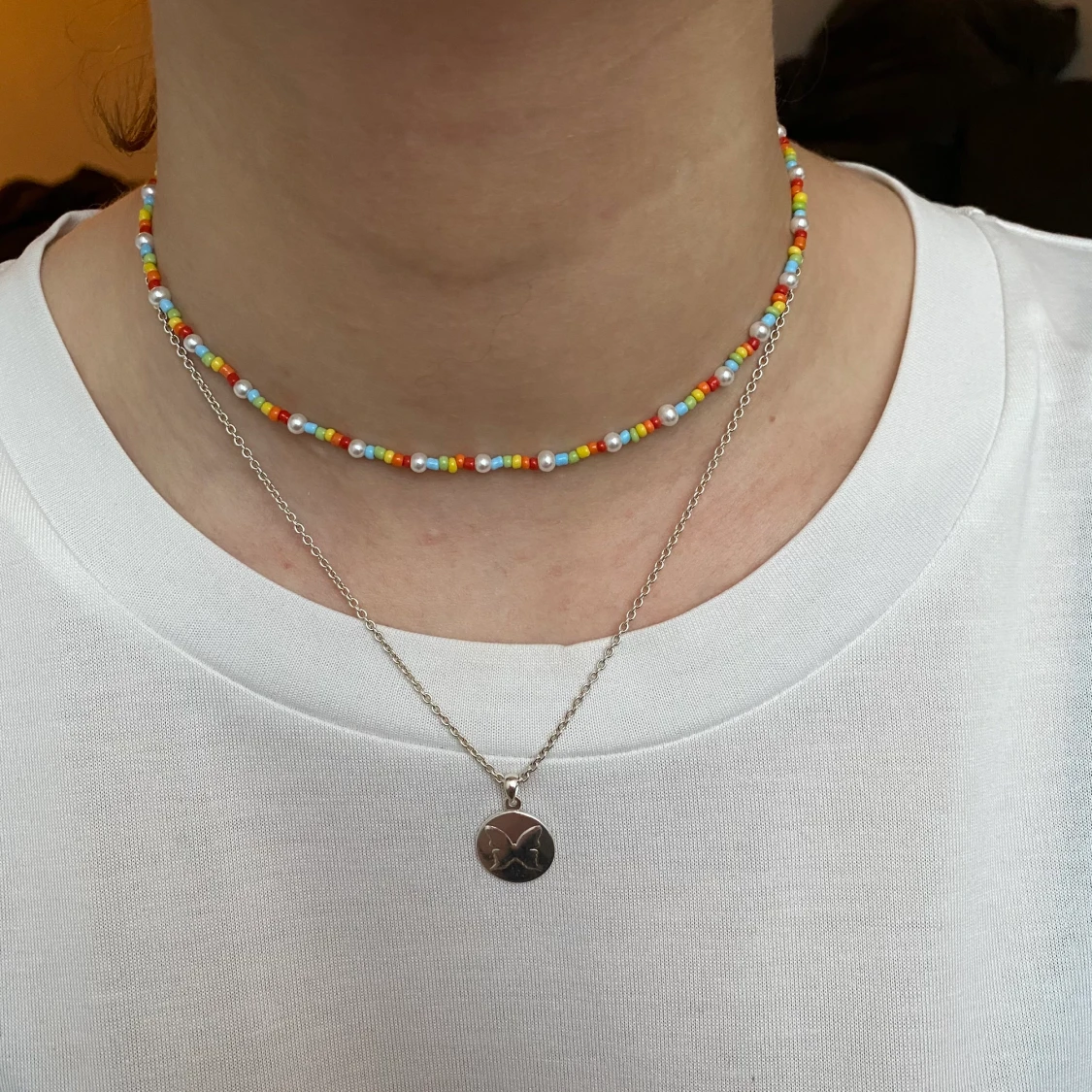 Pärlhalsband som går att förlänga (se bild 2). Frakt INGÅR i priset❤️