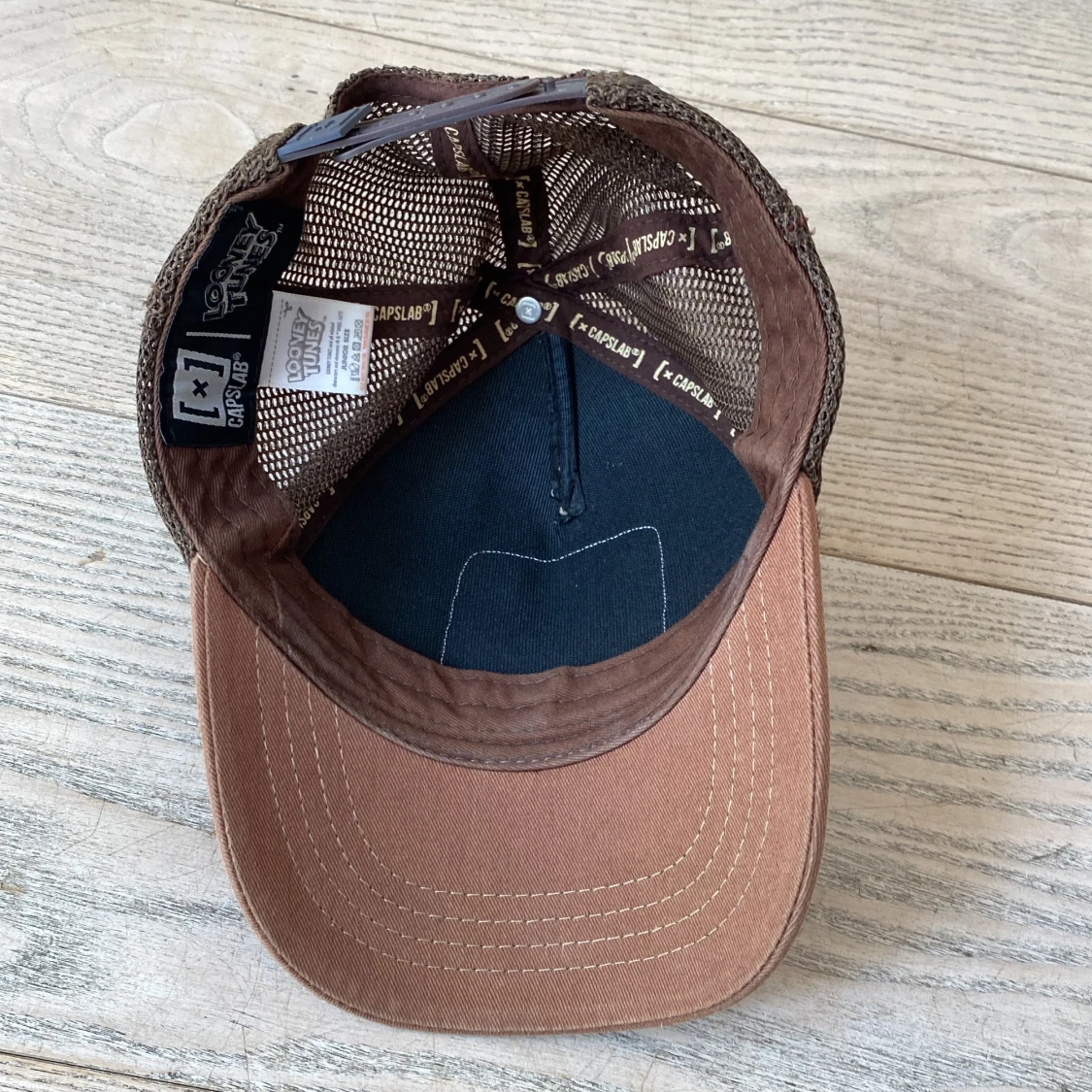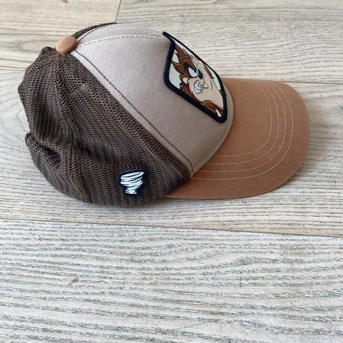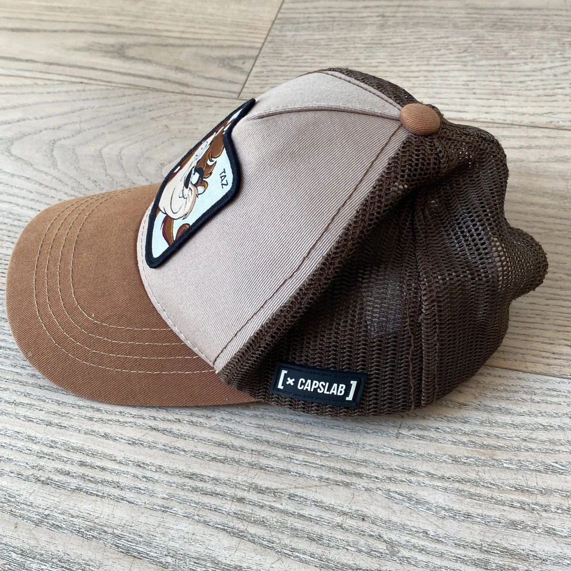 Snyg, i stort sett oanvänd, brun keps med Taz-motiv framtill och mesh på sidorna och bak. Framsidan är beige med broderad Taz-bild, skärmen är ljusbrun och kepsen har justerbar passform. Märkt med Capslab-logga på sidan.