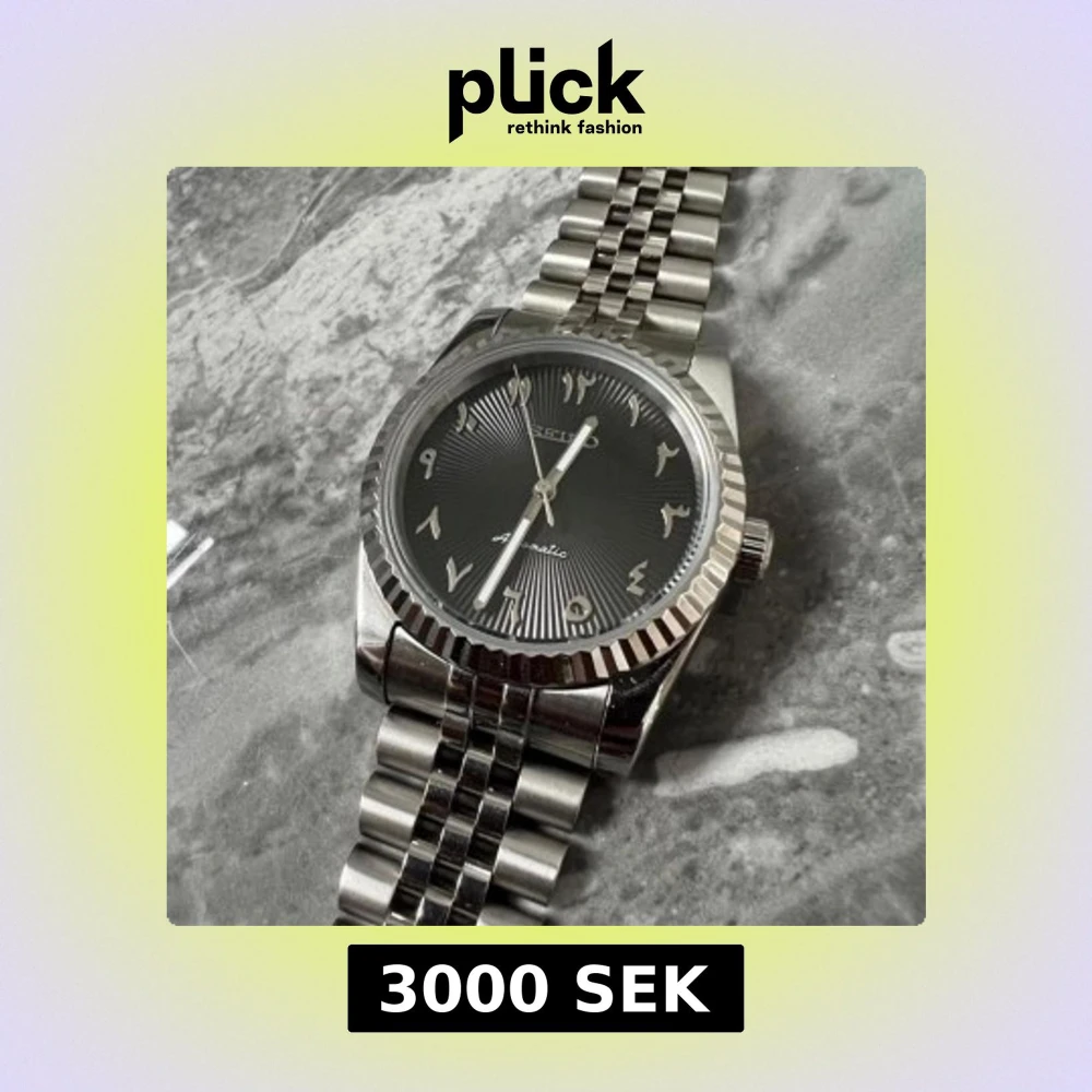 Elegant silverfärgad klocka med arabiska siffror på urtavlan. Klockan har en klassisk länkarmband och en räfflad bezel. Perfekt för den som söker en stilren och unik accessoar.
