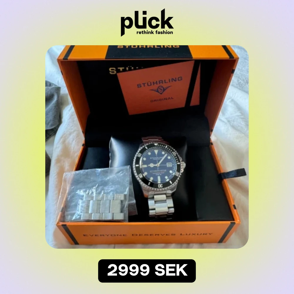 Säljer nu min Stührling klocka då den inte kommer till någon användning längre. Lite sliten men går enkelt att fixa. Box samt extra länkar medkommer vid köp. Nypris 4399kr