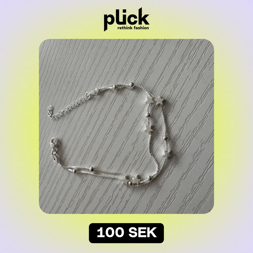 Snyggt dubbelradigt armband i silver med små stjärnor och kulor. Perfekt för att ge en extra touch till din outfit, oavsett om det är till vardags eller fest. Armbandet har en justerbar kedja för perfekt passform. ✨