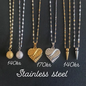 Stilrena örhängen och halsband  - Stilrena örhängen och halsband inspirerade av Maria Nilsdotter. Material-rostfritt stål. Örhängen längd-3,7cm, halsband längd-40cm. ☝️Vid köp ingår två extra berlocker som kan bytas ut, då själva hänget är ömtåligt och känsligt för stötar.