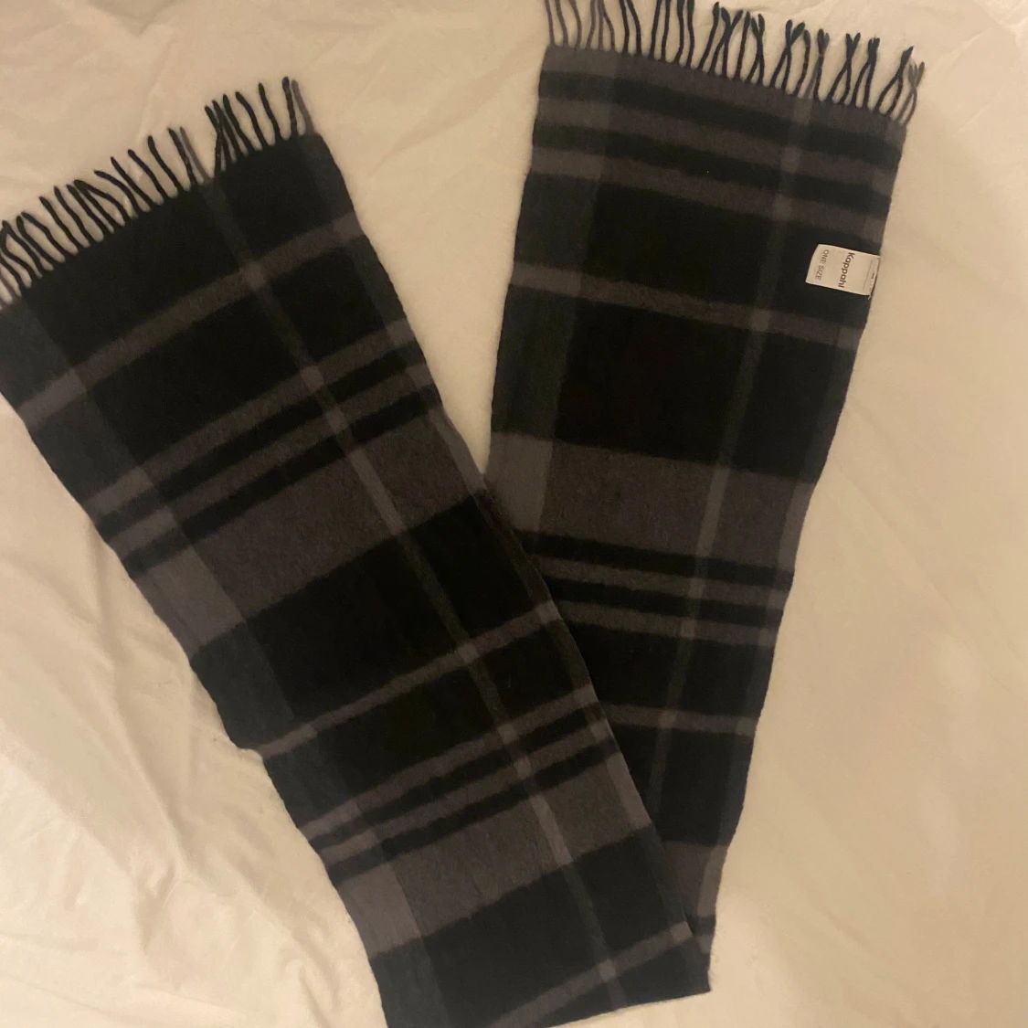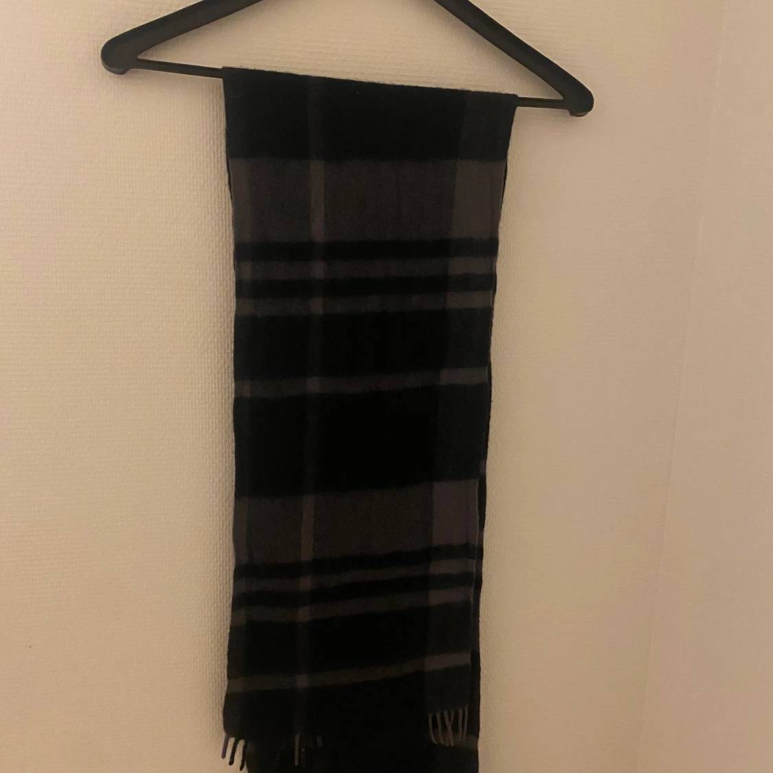 Säljer en stilren svart och grå rutig halsduk från Kappahl. Den är perfekt för att hålla dig varm under kyliga dagar. Använd ett fåtal gånger.