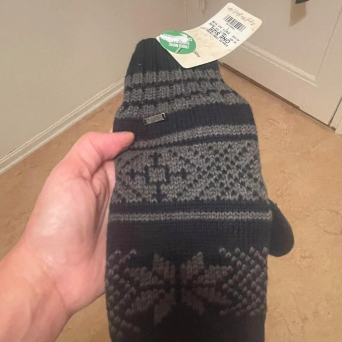 Mörkgrå och svarta stickade vantar från Hampton Republic med klassiskt nordiskt mönster. Utsidan är i mjuk stickad ullblandning och insidan fodrad med varm fleece. Perfekta för kalla vinterdagar och snygga till alla ytterkläder.