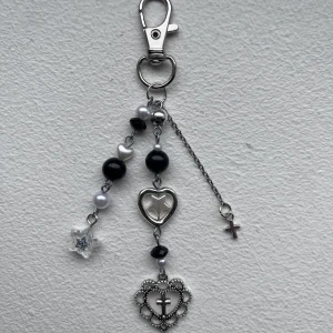 handgjord nyckelring med svarta och vita pärlor 🤍 perfekt som julklapp och kan sättas på väskor, nycklar osv. skriv gärna vid funderingar 💕 (frakt, som brev: 15kr)