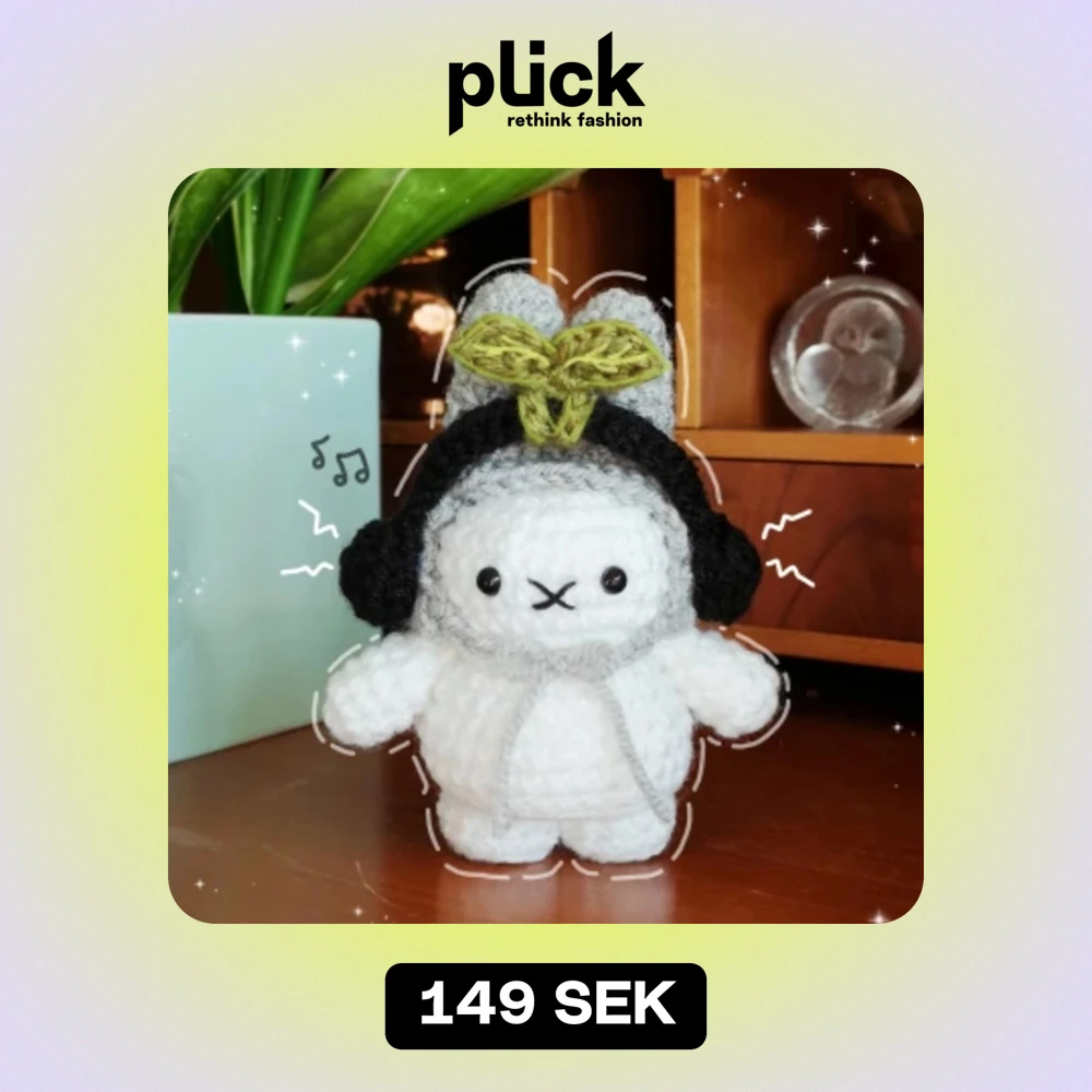 Supersöt handgjord Miffy med grĂ„ luva och hörlurar med leaf sprout đ± Perfekt dekoration hemma hos en Miffy Ă€lskare! Kan ocksĂ„ göras till nyckelring đ AnvĂ€nd gĂ€rna KĂP NU! Postas inom 5 dagar efter betalning đ€ mönster: @bondinbuds