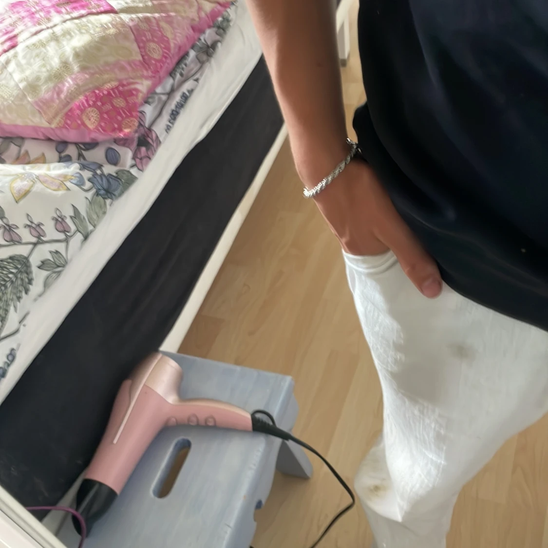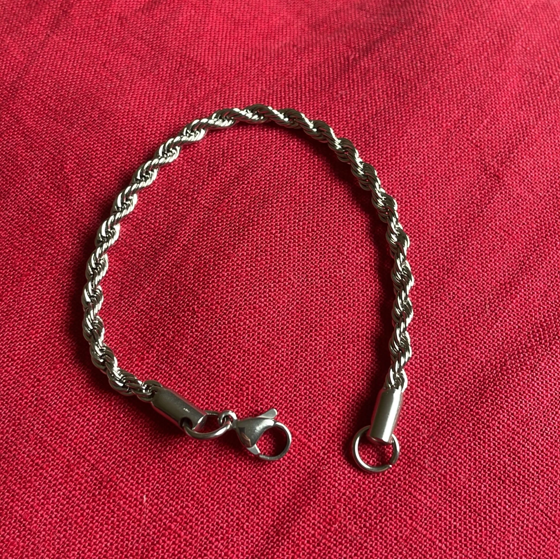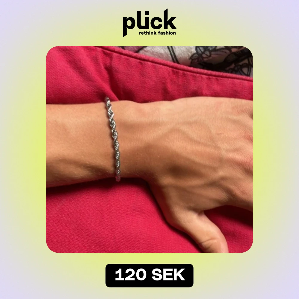 Vriden kedje armband i oanvänt skick i rostfritt stål. Mått:18cm Kan stå för frakten om de köps innan 2 juli